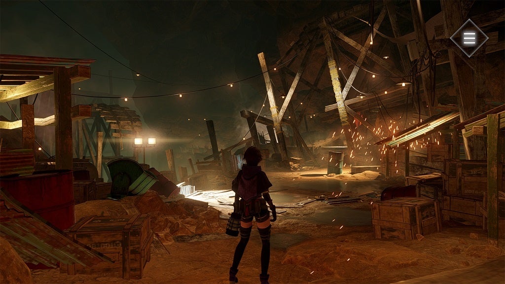 砂埃が舞う薄暗い洞窟、岩の隙間から差し込む光、静かに揺らめく灯りを映し出す水面から高精細なグラフィックスを感じていただけるでしょう。また、歩く足音や衣擦れの音、むき出しの電気回路から漏れる音など、洞窟内の反響や減衰をシミュレーションした3Dサウンドで臨場感を味わってください。洞窟を歩き進めていくと、冒険者は不思議な装置を手に入れます。道を阻む障害物に向かって装置を使うことで、リアルタイムの物理計算による爽快な破壊アクションも体験していただけます。ぜひ、豊富なオプションメニューでグラフィックスやサウンドの設定を細かく調整しながらお楽しみください。