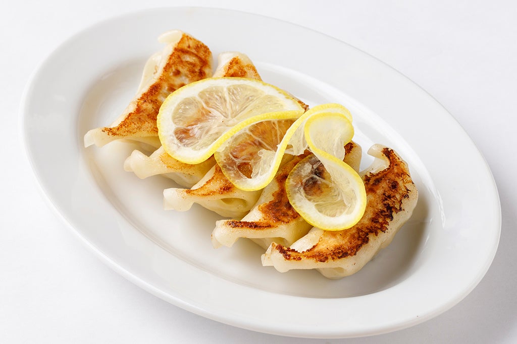 レモンの果実と果汁が、餃子の脂っぽさを和らげてくれる爽やかな一品。レモンサワーとの相性の良さは言わずもがな。
