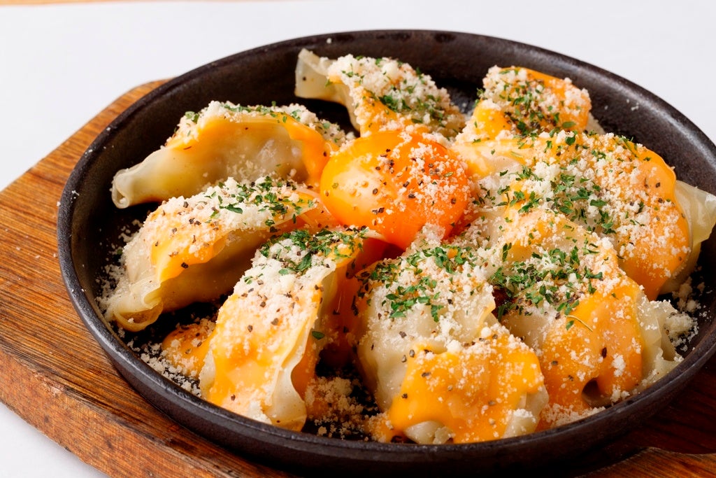 パスタの中でも人気上位のカルボナーラを餃子に!まろやかな卵黄とチーズの塩気、ピリリとした黒胡椒の風味が意外とよく合う新感覚餃子です。