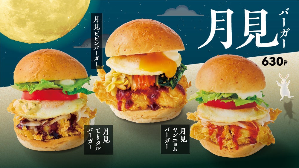 「オリーブチキンカフェ」でも毎年恒例となった月見バーガーの季節がやってきました。多くのお客様のご好評に応え、今年は新作の「月見ビビンバーガー」も含めた3種類の月見バーガーをご用意しました。毎年恒例となった「月見てりタルバーガー」や、定番の韓国チキンらしい「月見ヤンニョムバーガー」など、より多くのお客様に喜んでいただける、バラエティ豊かなラインナップとなっています。今年の月見は「オリーブチキンカフェ」でお楽しみください。