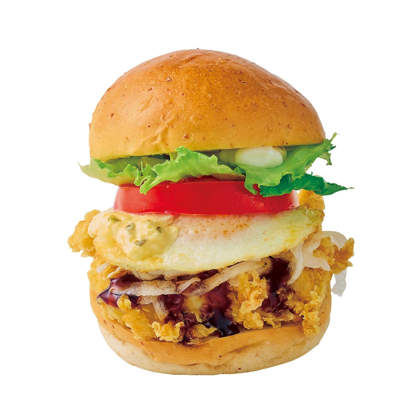 昨年も好評だった定番月見てりタルバーガー。国産ササミ使用のチキンフィンガーに、アカシアはちみつ使用の醬油ベースソイソースと、具材感たっぷりのタルタルソースが相性抜群。「オリーブチキンカフェ」の月見バーガーはレタスとトマトをはさんで野菜たっぷりにすることで美味しさの相乗効果を発揮しています。