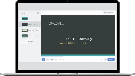 お持ちのPowerPoint資料をベースにした教材から、受講者からの能動的なアクションが可能なインタラクティブ教材まで、幅広く対応。
