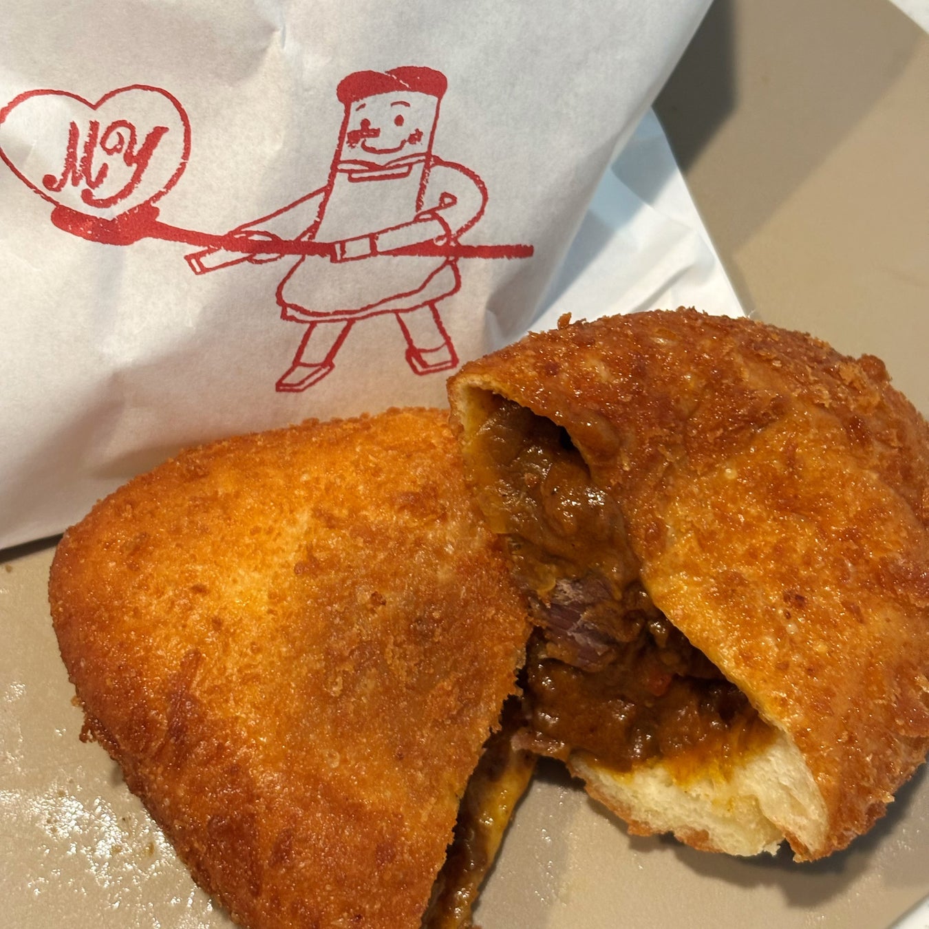 小さいころから食べ慣れている味。私はそんないつになっても変わらないベーカリーハウス マイのパンが大好き。カレーパンは隙間なく敷き詰められているルーとゴロゴロたくさんの牛肉が入っていて一つで満足感がある。周りの衣は食べるたびにさくさく音が鳴る。完成まで100時間かかる、ベーカリーハウス マイで一番人気のパン。そのほかのパンも食パンはさくさくふわふわ。あんぱんはこのセットに入っていないが、あんこがぎっしり入っていて優しい味。まさにあんぱんの原点。気づくとまた食べたくなる。そんなパンが入っているこのセットぜひみなさんに一度食べてもらいたいです。