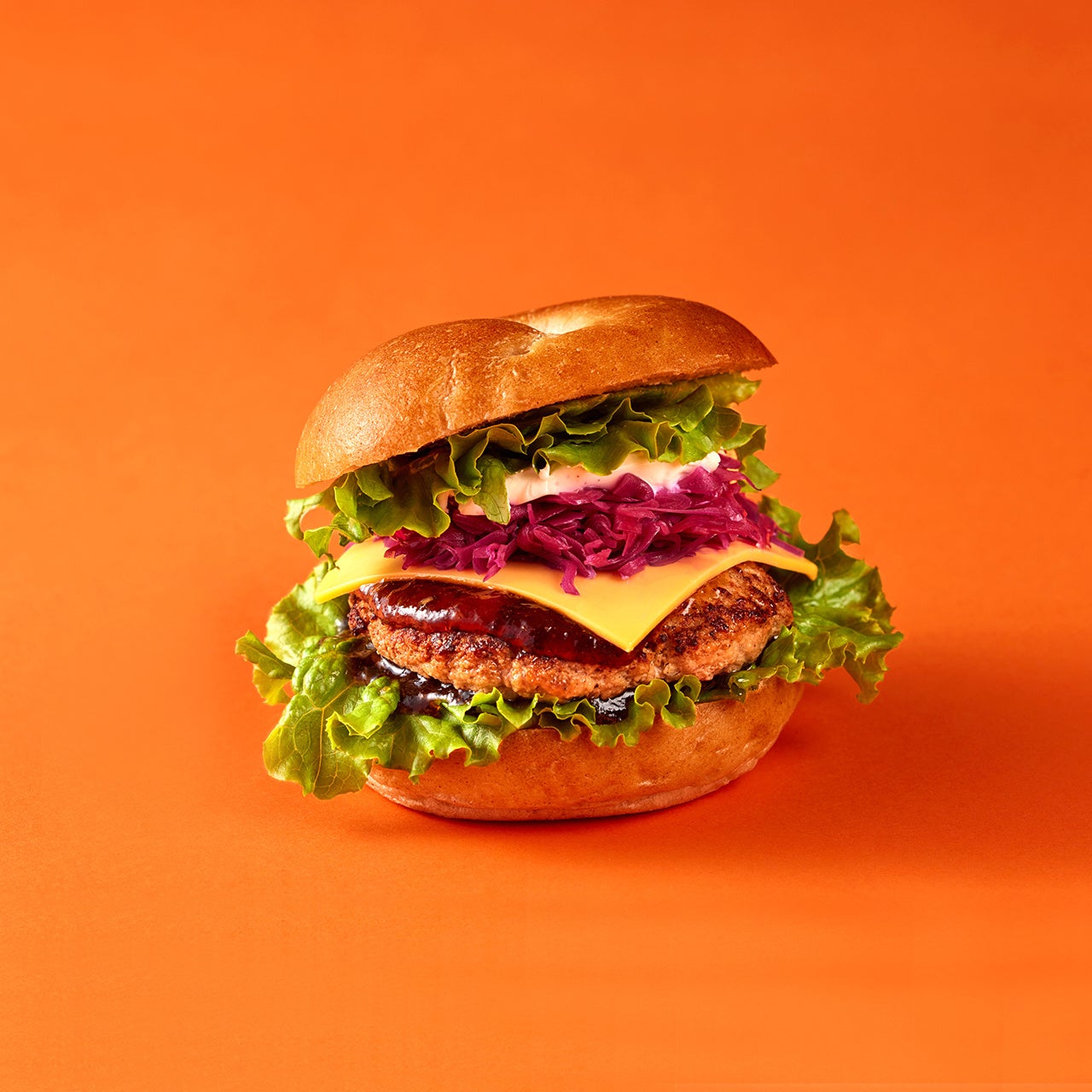 『円陣ベーグル』は、アルビレックス新潟とホテルイタリア軒のコラボレーション企画として、チーム内でもパン好きの選手とされる堀米悠斗選手、高木善朗選手、早川史哉選手がそれぞれ考案したアイデアをもとにホテルのパン職人が試作を重ね、“断面映え”にもこだわったベーグルサンドです。クラブのチームカラーでもあるオレンジを意識した食材を取り入れつつ、高木善朗選手のリクエストでもあったホテルイタリア軒特製ベーグルを使用しているのも特徴です。