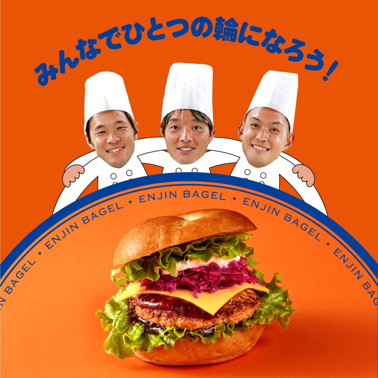 丸いベーグルをチームの“円陣”に見立てたネーミングには、新潟でみんながひとつの輪になろう!という想いも込められています。新たなスタグル名物としてぜひ応援と共にお楽しみください。