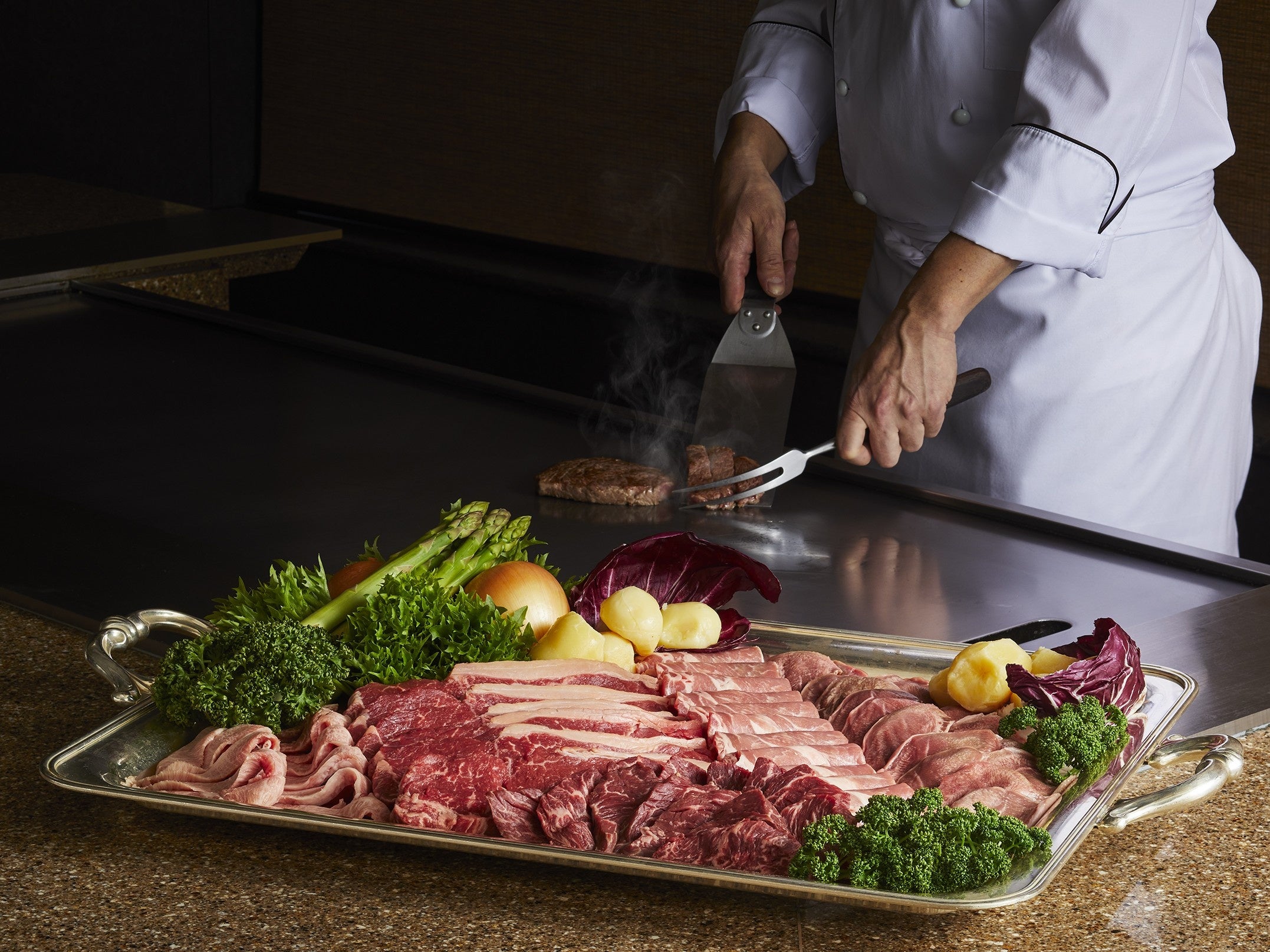 ライブ感あふれる鉄板焼を心ゆくまでご堪能いただけます。