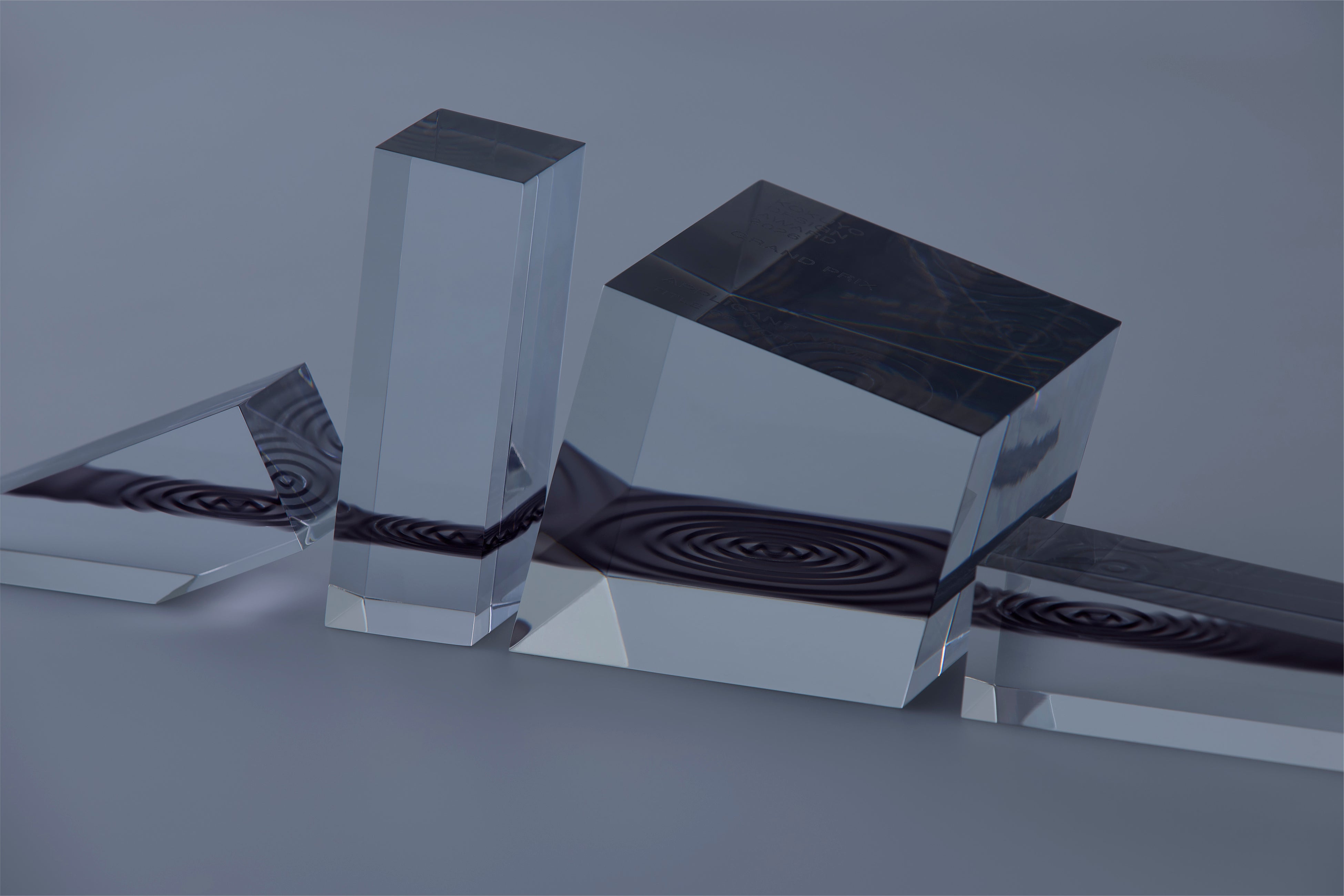 グランプリと優秀賞受賞者に授与されたトロフィーは、一石を投じることで起きた波紋を閉じ込めたものです。角度を変えることで柔らかく浮かび上がる波紋は、アイデアがミクロな自分から、マクロな社会へと広がり始めた様子を表現しています。 また、ファイナリストに授与された表彰状は、メインビジュアルの一石を投じる石たちを一枚一枚異なるデザインで採用しており、ファイナリストたちそれぞれの持つ多様性を表しています。