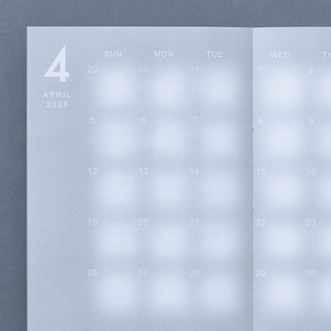 作品概要:日ごとに予定の量が違ったり、日を跨ぐ予定があったりするのに対し、従来の手帳は1マスの大きさが同じで、罫線によって日と日がきっぱり区切られている。私たちはそのような手帳のあり方に疑問を感じ、「うつろう手帳」を制作した。この手帳には罫線がなく、白とグレーのグラデーション(うつろい)のみで日々を分けている。これにより、書き手は予定の量に応じて1マスの大きさを自分で決めることができ、日を跨ぐ予定もつながりを感じながら書き込むことができる。