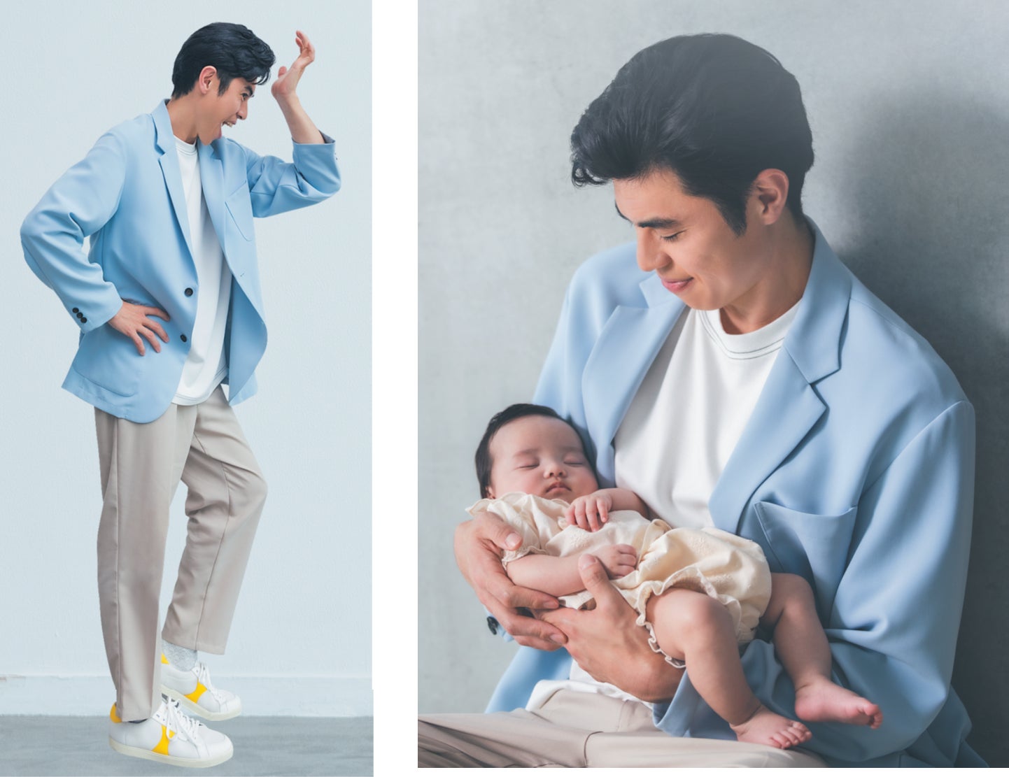 「赤ちゃんモデルと、“ほっこりハッピーおっぱっぴー”な表紙撮影」 お笑い芸人・小島よしおさんが『初めてのひよこクラブ』(6/14発売)パパになって表紙初登場