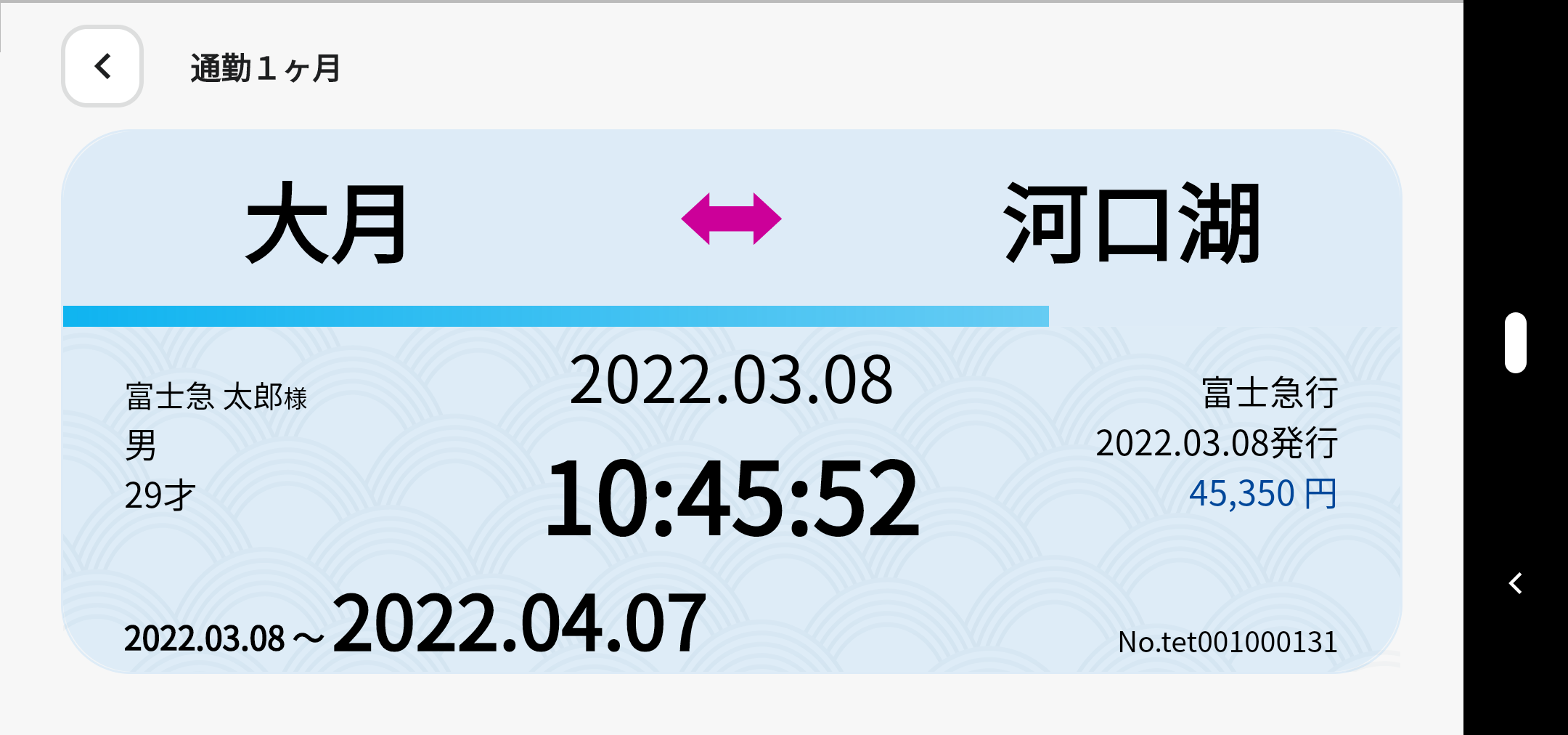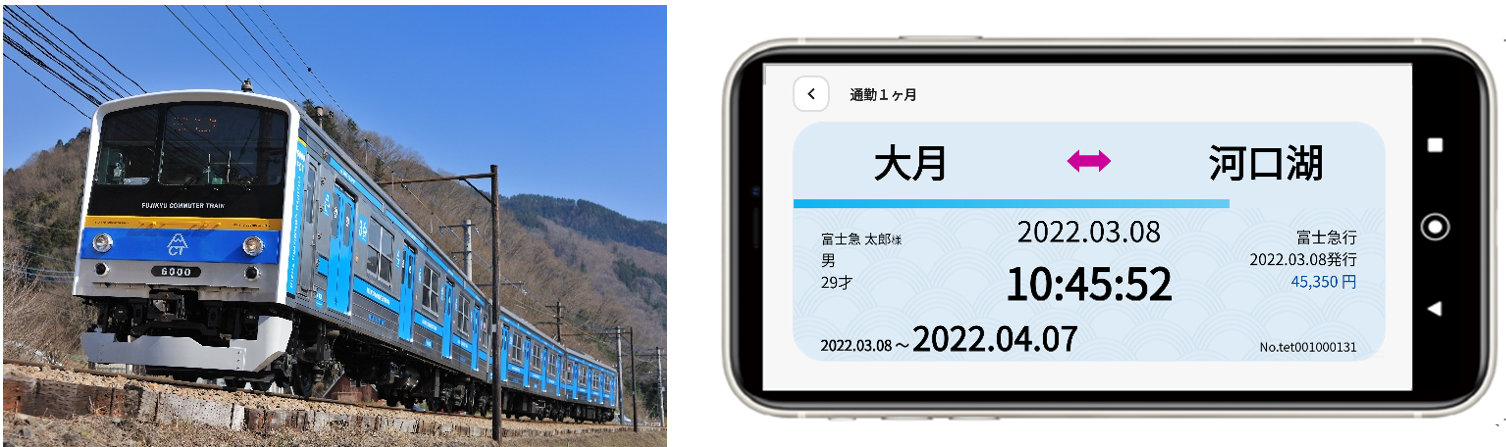 富士急行株式会社(本社:山梨県富士吉田市、取締役社長:堀内光一郎)では、大月~河口湖駅間を運行する富士急行線において、スマートフォン用アプリ「チケパスプラス」を利用した「スマホ定期券」のサービスを2022年3月31日(木)より開始いたします。本サービスの導入により、駅窓口に行かなくても富士急行線の定期券を24時間オンラインで購入することができるようになると共に、駅でスマホの画面を提示するだけでスムーズにご乗車いただけるようになります。またスマホ定期券のサービス開始に伴い、2022年4月30日を以て定期券継続割引サービスを終了させていただきます。詳細は以下の通りです。富士急行株式会社(本社:山梨県富士吉田市、取締役社長:堀内光一郎)では、大月~河口湖駅間を運行する富士急行線において、スマートフォン用アプリ「チケパスプラス」を利用した「スマホ定期券」のサービスを2022年3月31日(木)より開始いたします。本サービスの導入により、駅窓口に行かなくても富士急行線の定期券を24時間オンラインで購入することができるようになると共に、駅でスマホの画面を提示するだけでスムーズにご乗車いただけるようになります。またスマホ定期券のサービス開始に伴い、2022年4月30日を以て定期券継続割引サービスを終了させていただきます。詳細は以下の通りです。