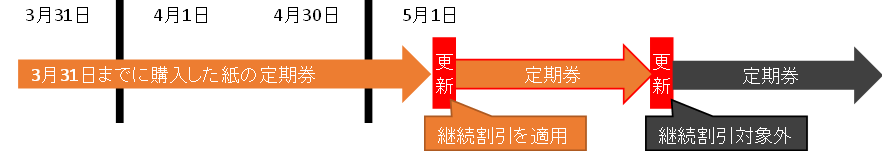 ① 3月31日以前に購入した紙定期券を紙定期券に更新する場合