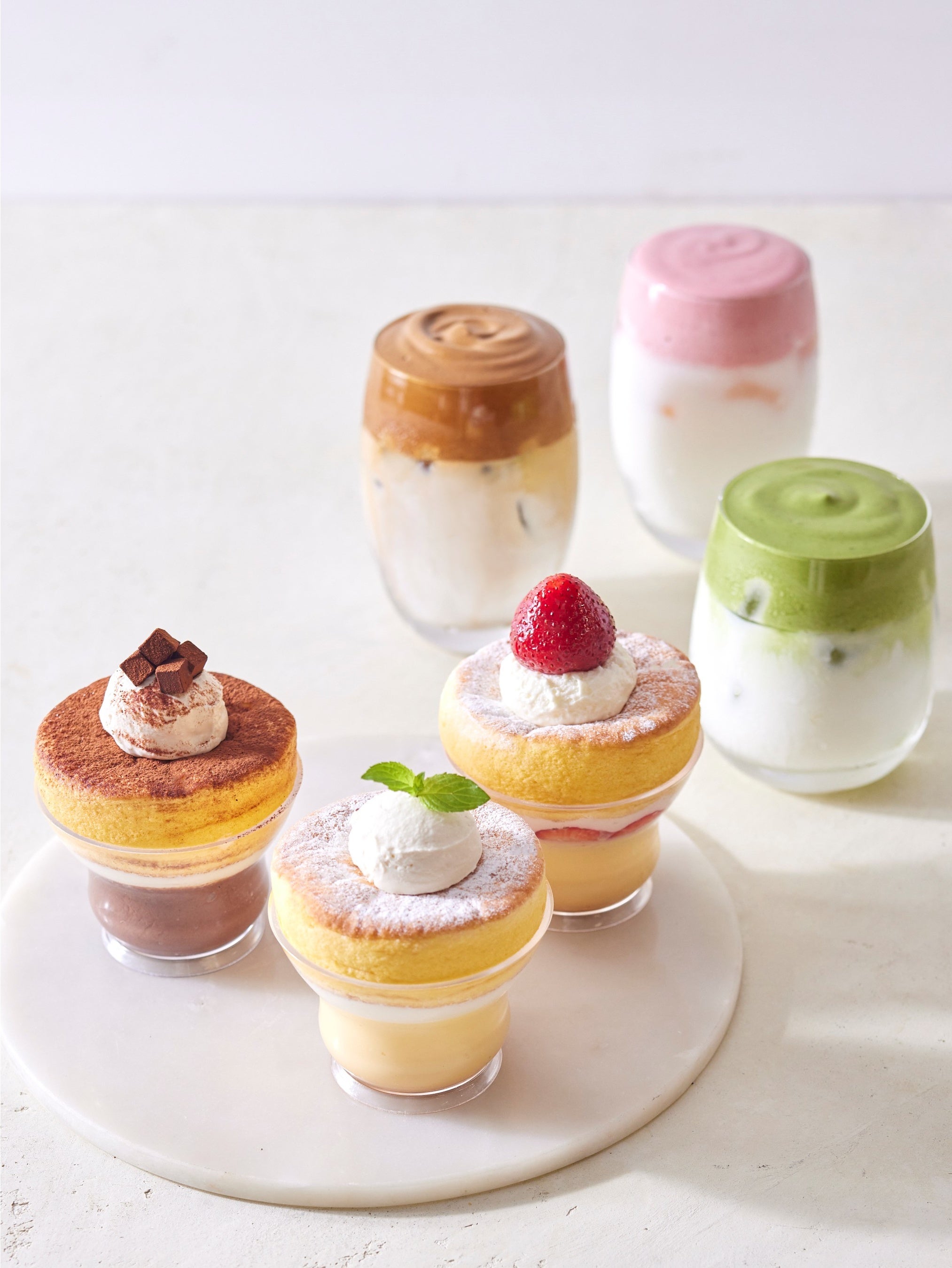 パンケーキ+プリンが溶け合う新食感スイーツとして絶大な人気を誇った「奇跡のスフレパンケーキプリン」が名古屋限定で完全復活。契約養鶏所・竹鶏ファームのたまごを使用したコク深いカスタードプリン、味わいを引き締めるビターなカラメルソース、バターの香りが引き立つメープルバタークリーム、FLIPPER’Sの代名詞・とろけるくちどけのスフレパンケーキの4層が織りなす絶妙な優しい甘みと口当たりが抜群な一品。クラシックなプレーンの他、チョコレートと季節フレーバー・ストロベリーの全3種がラインナップ。