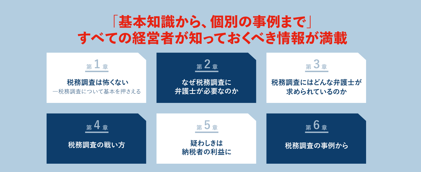 本書では、「そもそも、税務調査とは何か?」をわかりやすく解説するとともに、税務調査における弁護士ならではの強みや、これまで多くの事例を経験してきた著者だからこそ伝えられる「税務調査の戦い方」をご紹介します。