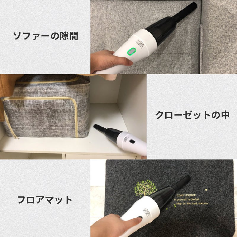 持ち運びが簡単で、車内やお家の中の従来の掃除機では掃除しづらい部分のお掃除に適しています。