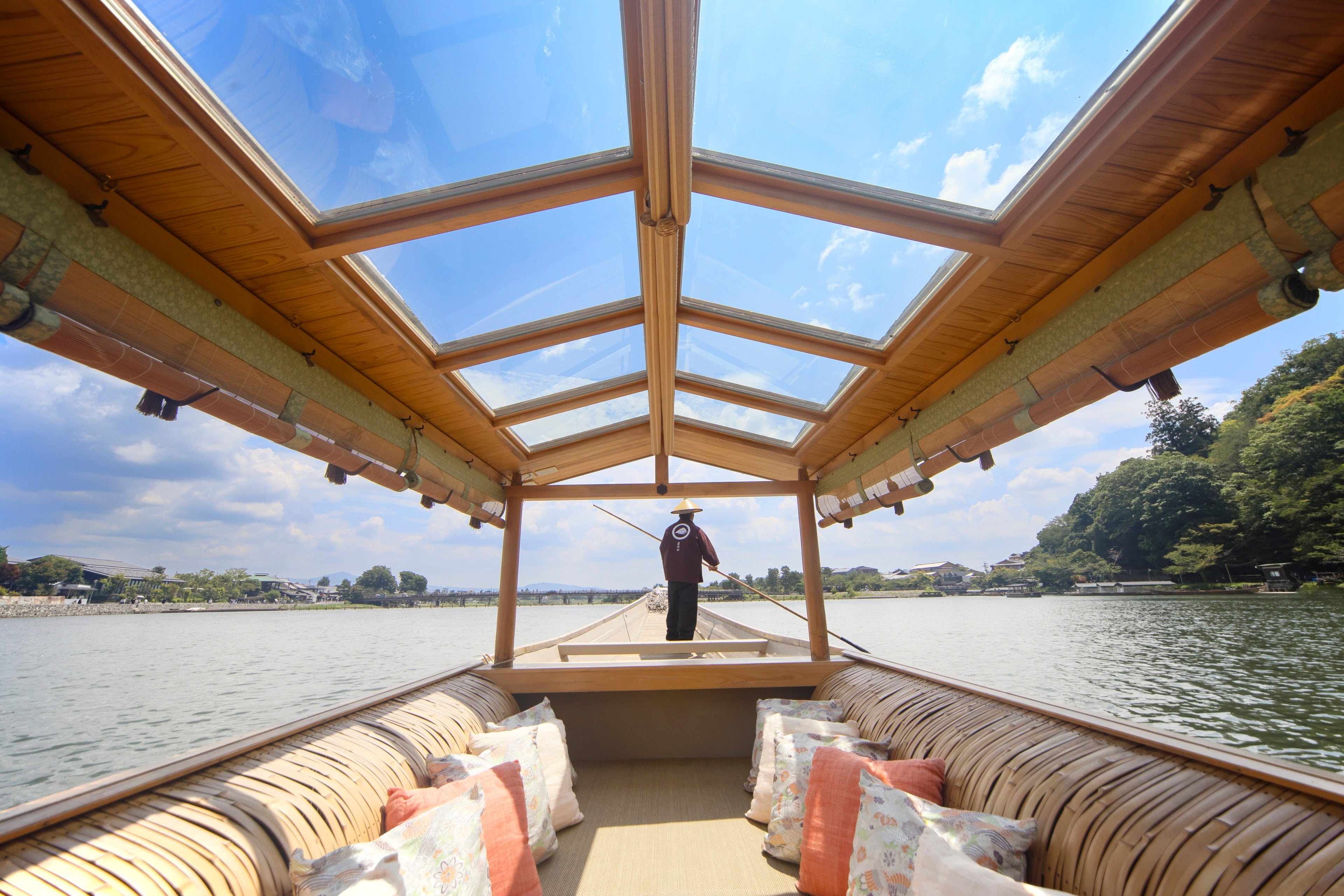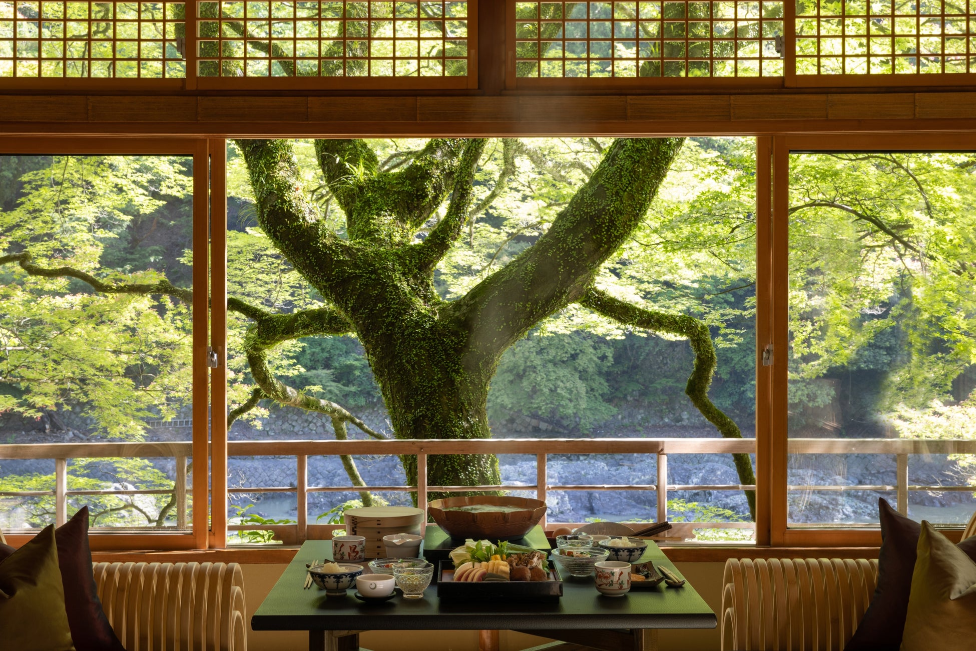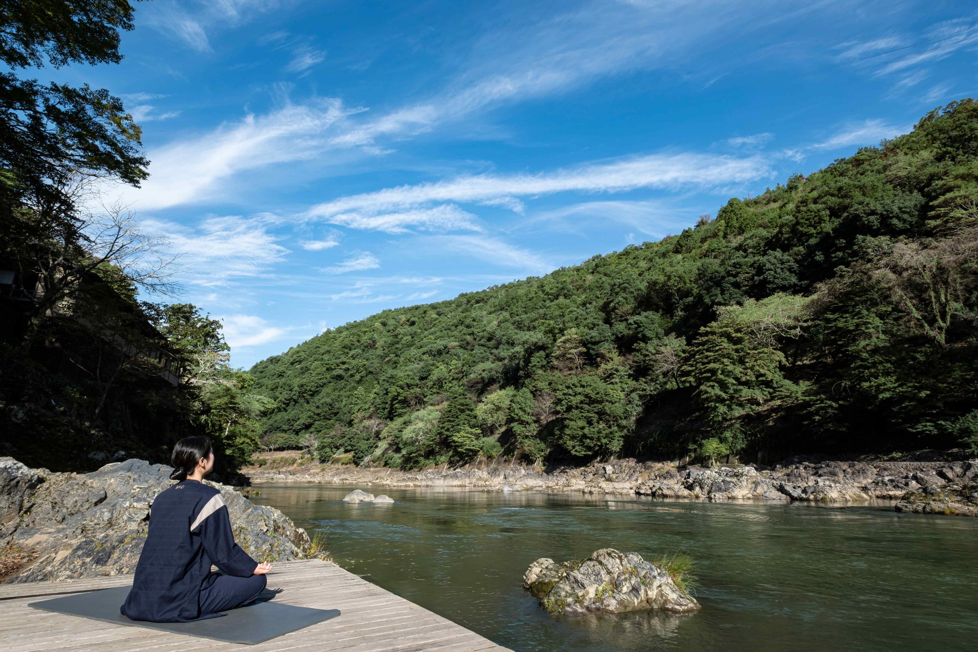 平安貴族が興じた嵐山にたたずむ水辺の私邸で時を忘れる。渡月橋から船に乗り、大堰川を遡った先では、京都に息づく日本の伝統技法を感じる客室、嵐山の情景を映した滋味豊かな日本料理、四季の美しい景観と静けさの非日常が提供されます。