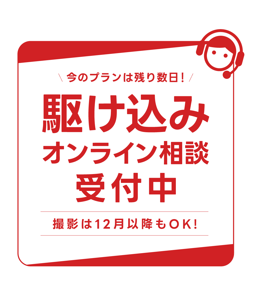 ※全てのプランにおいて、土日祝日の撮影料金が3,000円+税から5,000円+税に変更となります。