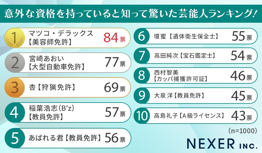 株式会社NEXER・意外な資格を持っていると知って驚いた芸能人に関する調査