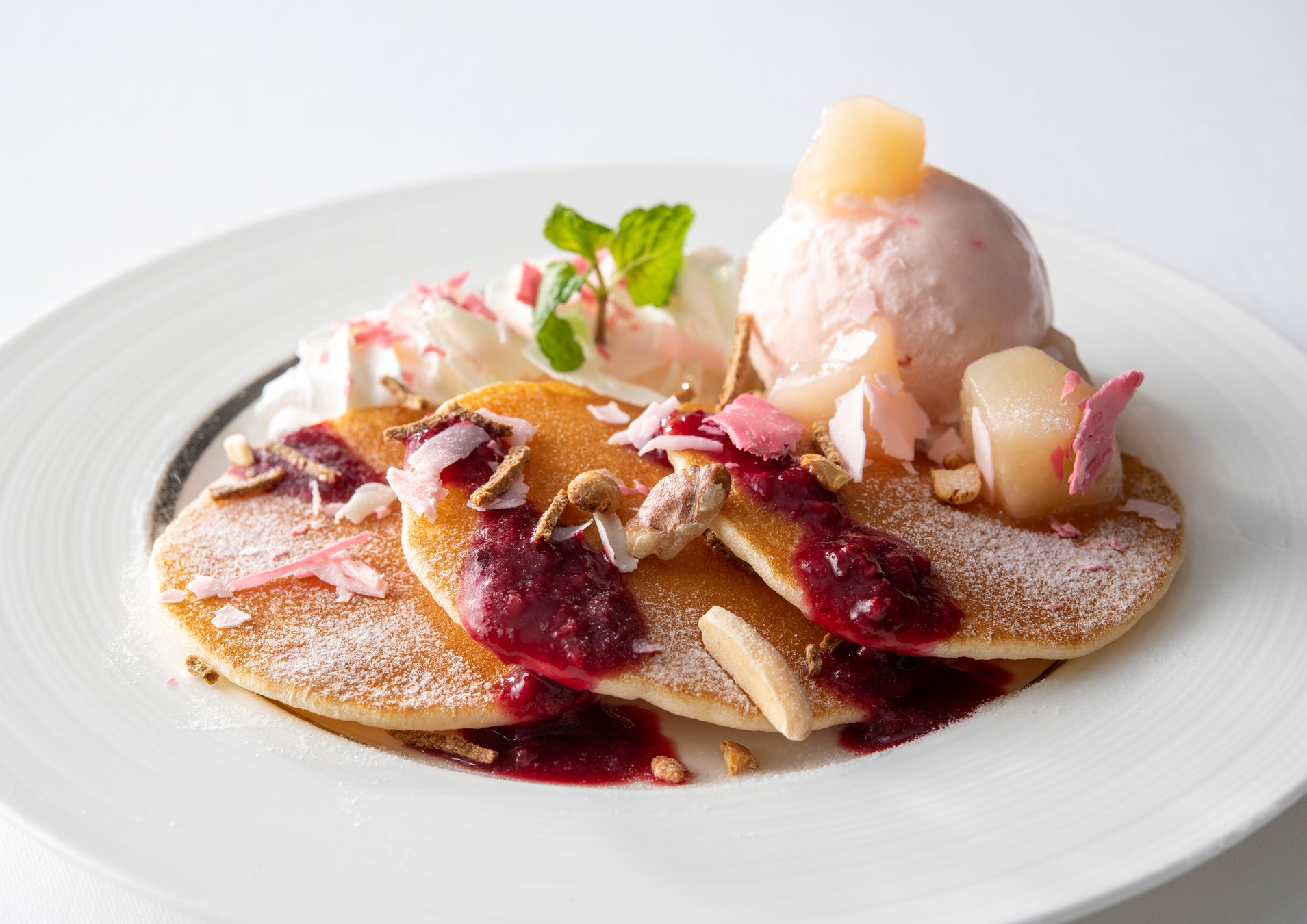 桜アイスとミックスベリーソースの春色パンケーキ 700円