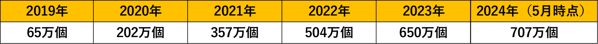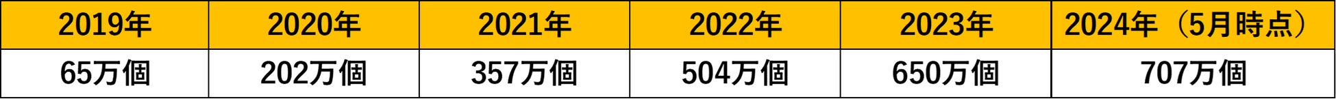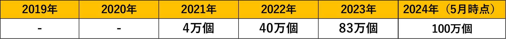 2021年の累計出荷数は4万個ですが、2022年は累計出荷36万個、2023年は累計出荷83万個と毎年大きく出荷数を増やしました。
