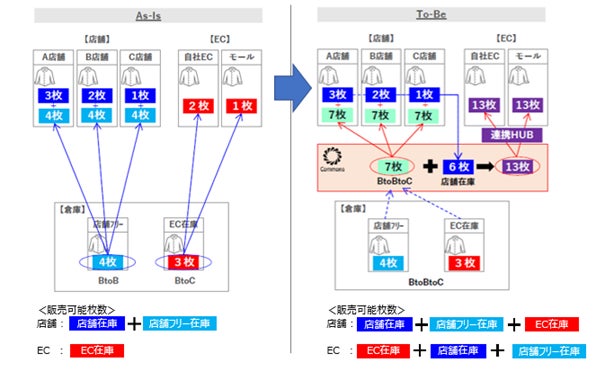 一方で、企業側はEC在庫の欠品による売上機会の損失や、店舗在庫の欠品商品を他店から調達する際に発生する店舗間移動コストといった課題を抱えており、在庫場所に依存しない販売プロセスの実現が求められています。