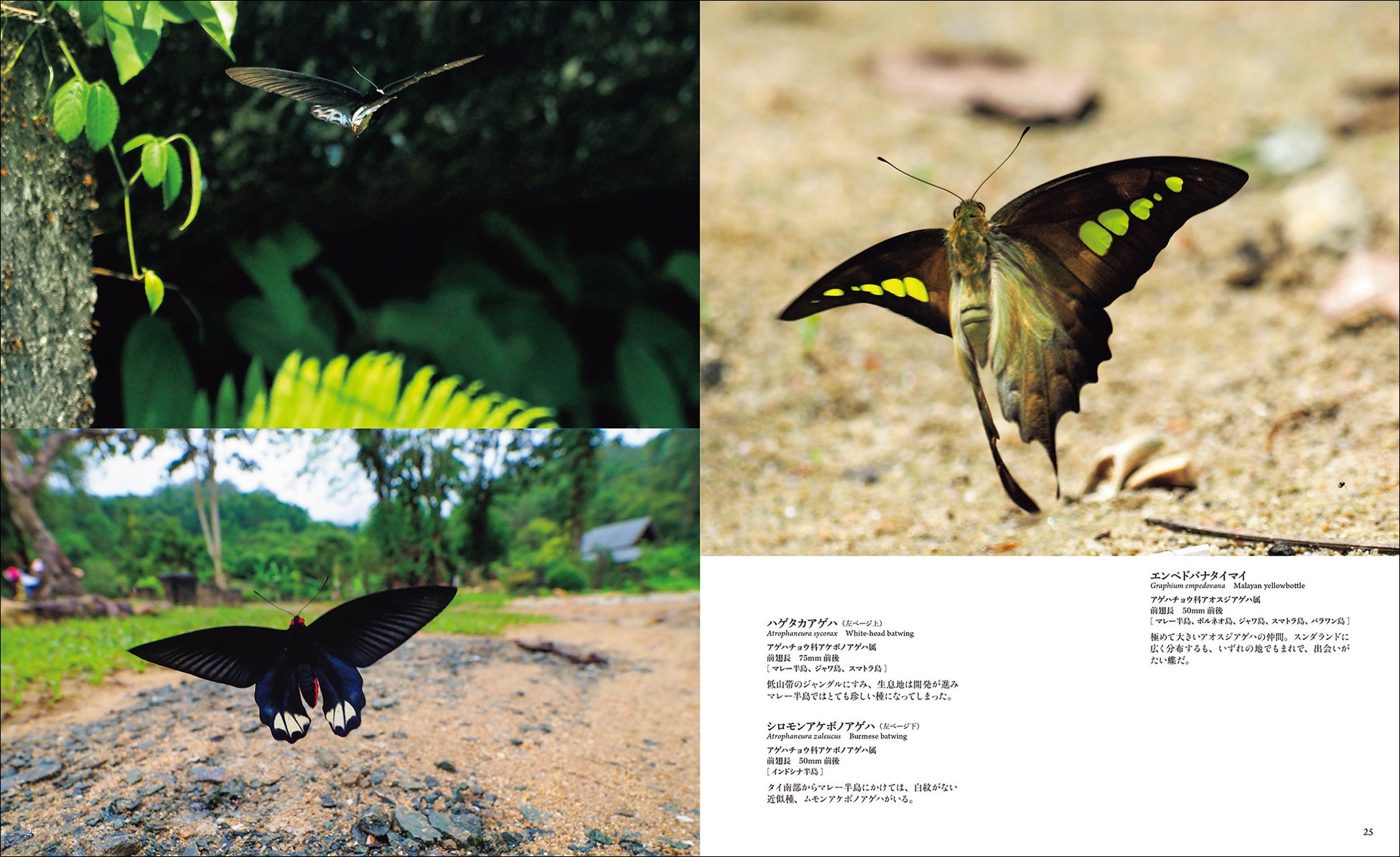 種のコンプリートが目的ではなく、あくまでも自然界での美しい蝶の写真、蝶のいる美しく、ダイナミック自然の写真を楽しむためのビジュアルブックです。