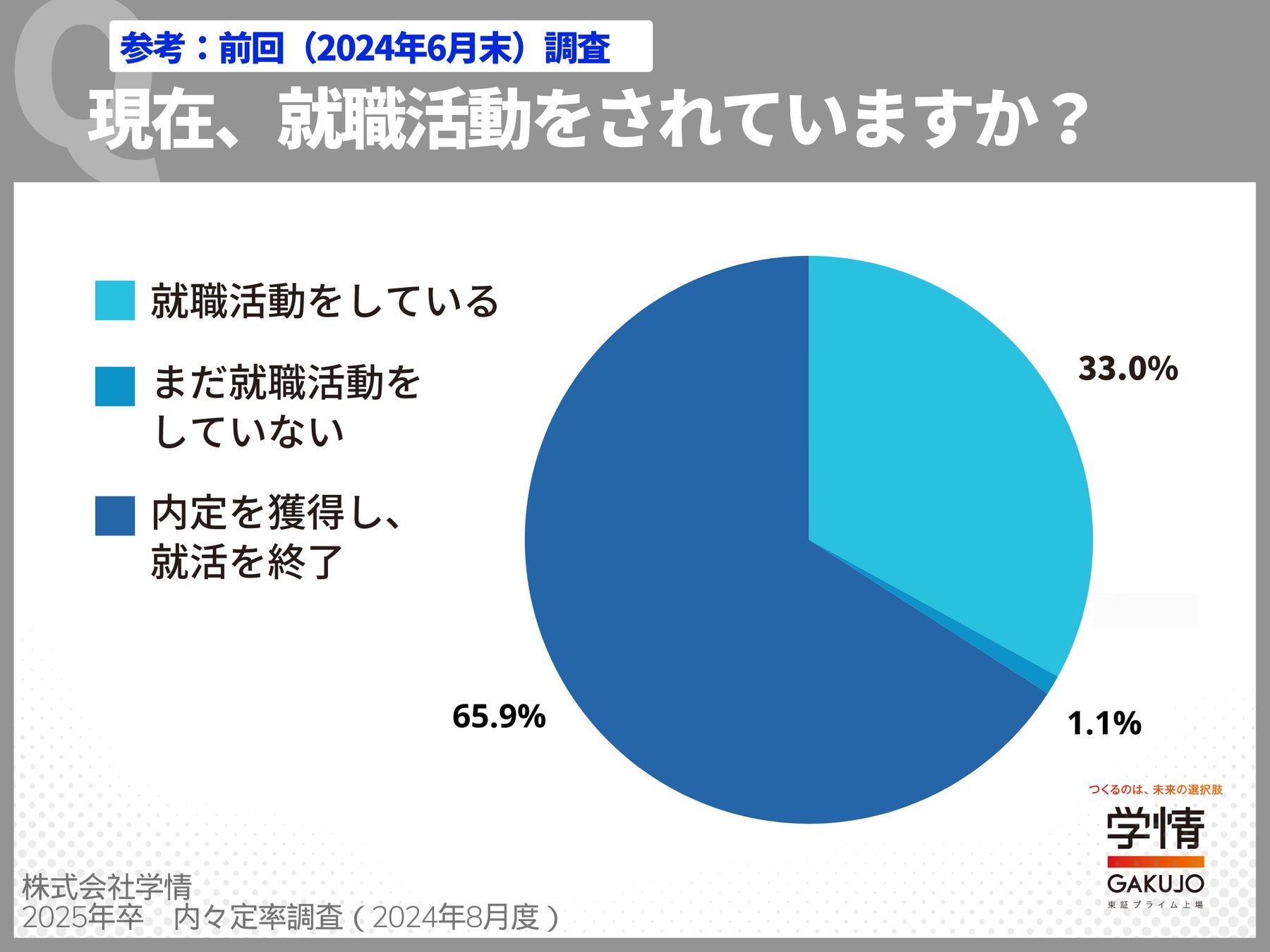 2025年卒学生の内々定率は7月末時点で<86.8%>。“就職活動をしている”学生は3割を下回る