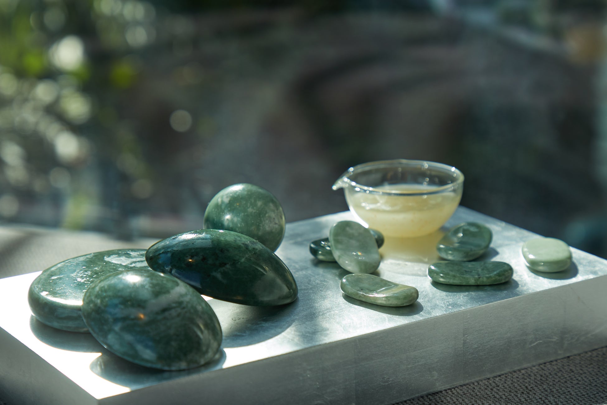 古来より、翡翠は「癒やしの石」として大切にされてきました。特に温翡翠は、遠赤外線効果によって体を深部まで温め、より深いリラックスへと導きます。温翡翠を滑らすように行うトリートメントによって、心身がほぐれていくのを感じることができます。