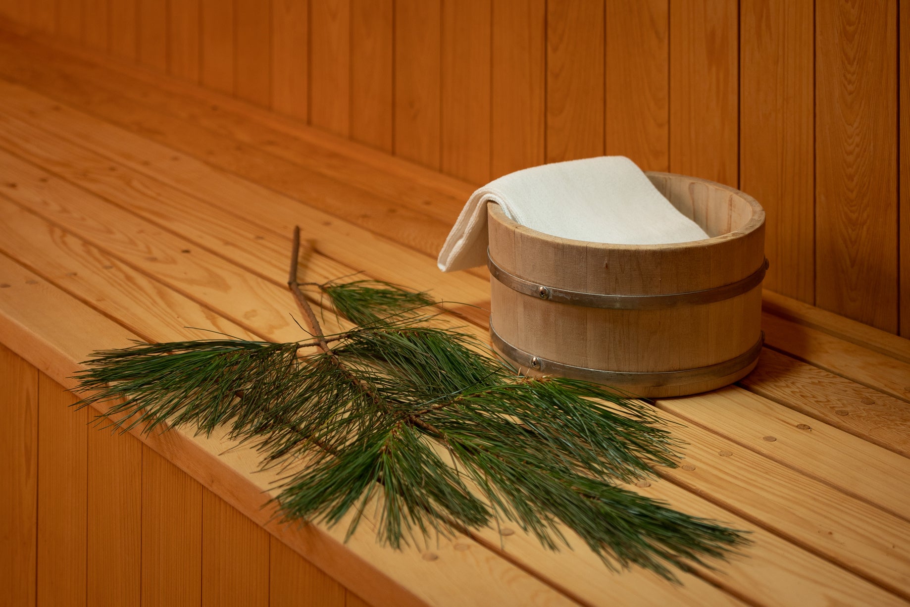 星のやグーグァンの大浴場には、檜木造りの内湯と、自然の中で湯につかるような感覚になる、緑に囲まれた露天風呂があります。鳥のさえずりや風の音に耳を傾けながら、ゆったりと湯の中で心身をほぐすことができます。そして、露天風呂に備えられたサウナを、本プラン限定で「松薫(ソンシュン)サウナ」に仕立て、温浴のリラックス効果との相乗効果を目指します。