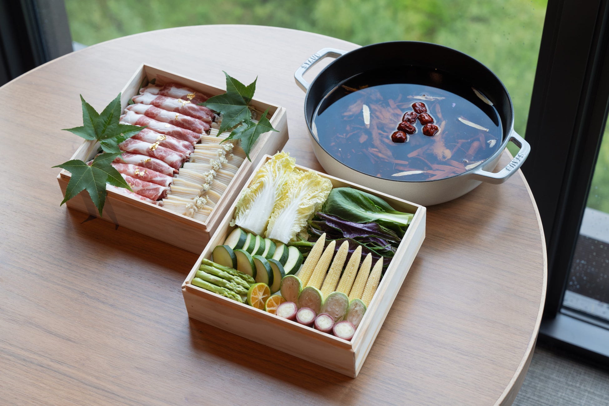 14:30 星のやグーグァン到着 体調に合わせて選ぶ青草茶を飲みながらチェックイン 18:30 緑の薬膳火鍋 20:00 スパ「翠」1名様 |