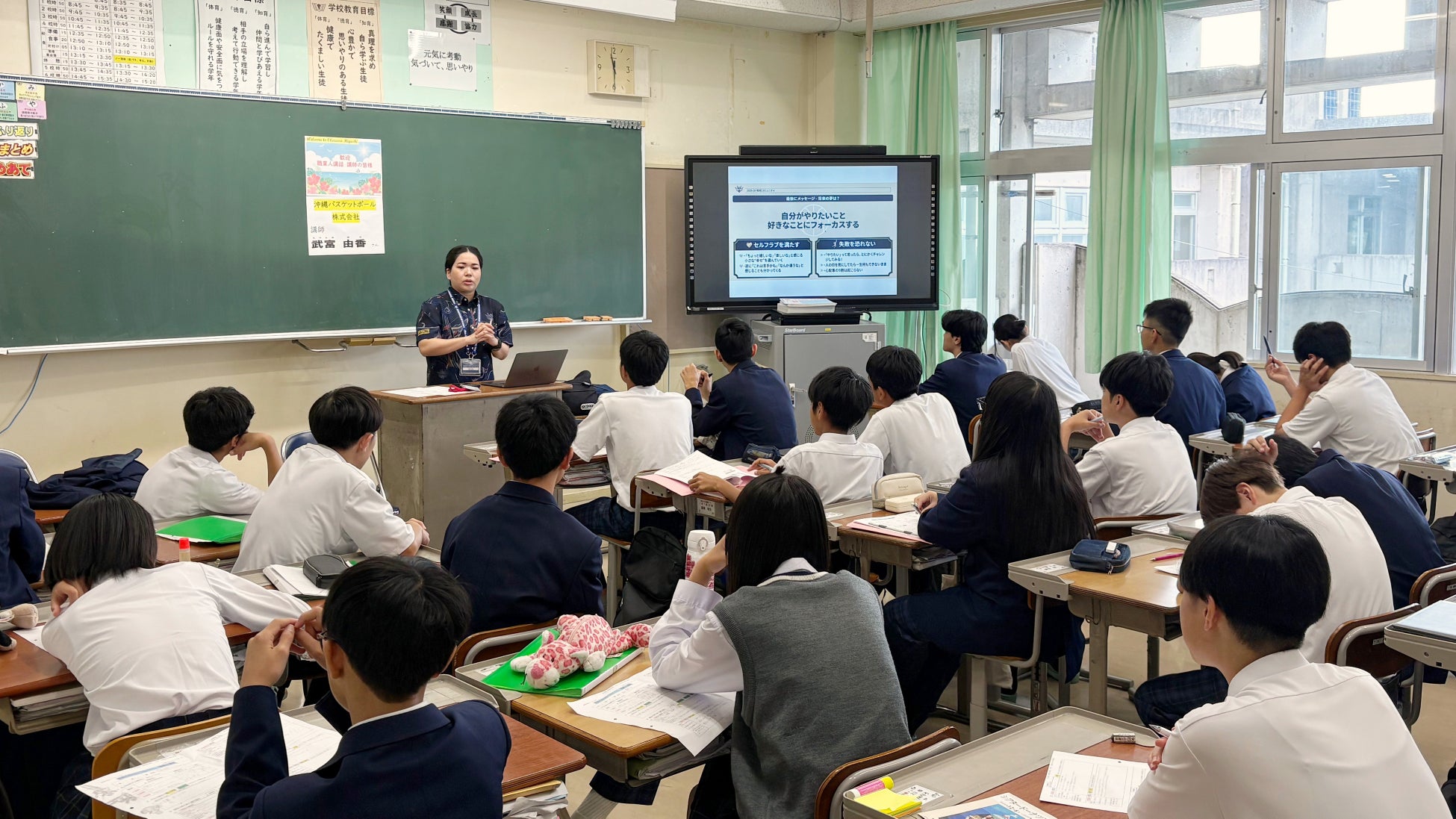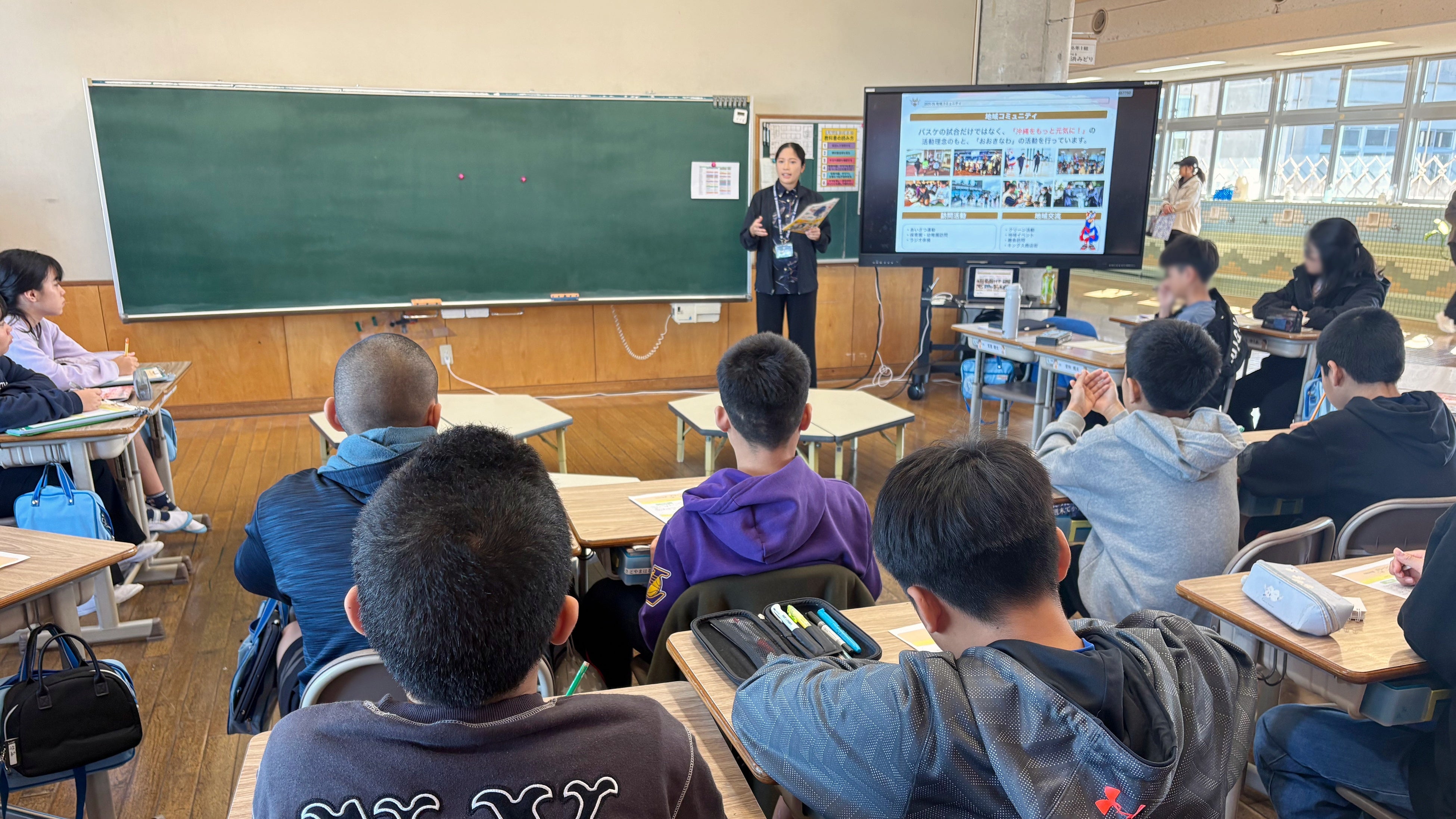 各校の「将来の夢」や「なりたい自分」について考えるキャリア教育の一環として行われた本講話では、プロバスケットボールチームを運営する会社の仕事についてお話しし、多くの児童・生徒が興味深く耳を傾けてくれました。