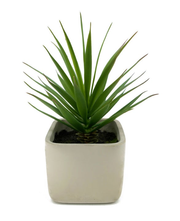 消臭剤配合のインテリアグリーンは、商品自体に香りはなく、葉の部分に消臭剤成分を配合した人工観葉植物です。直線的でシャープな葉形を特徴とするソードグラスを採用。サイズは幅14.6×奥行14.6×高さ21cmとコンパクトで、棚やトイレ、玄関などに置くだけで、手軽に消臭効果を発揮します。