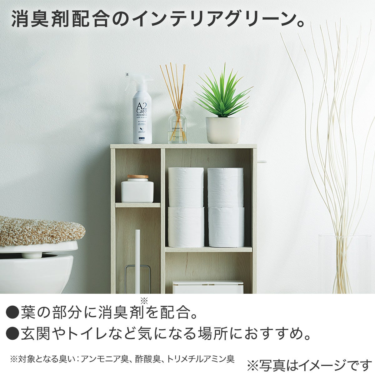 特に、玄関やトイレ、リビングなどでのニオイ対策は、日々の暮らしの心地よさを左右する重要なポイントです。こうした背景から、ニトリは消臭効果とインテリア性を両立する商品として、消臭剤を配合した「フレグランスシリーズ」と「インテリアグリーン」を開発しました。シンプルでインテリアに調和するデザインで、お部屋の美しさを保ちながら、快適さをプラスします。