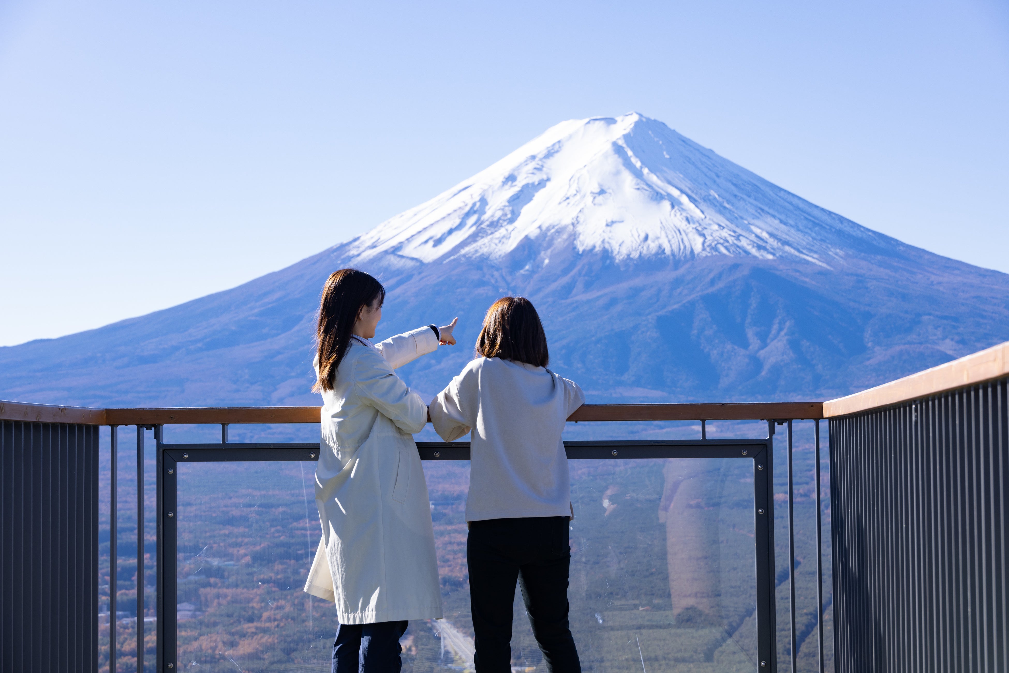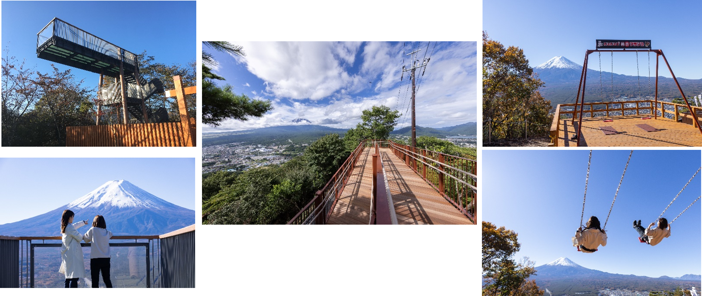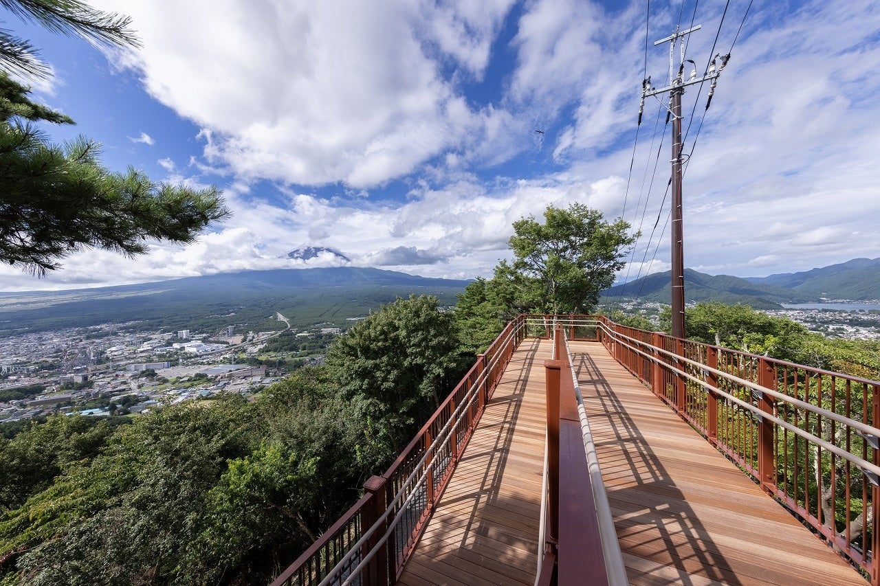 山頂のロープウェイ乗り場から展望広場まで続くゆるやかなスロープで、富士山と河口湖を眺めながらゆったり贅沢な空中散歩をお楽しみいただけます。