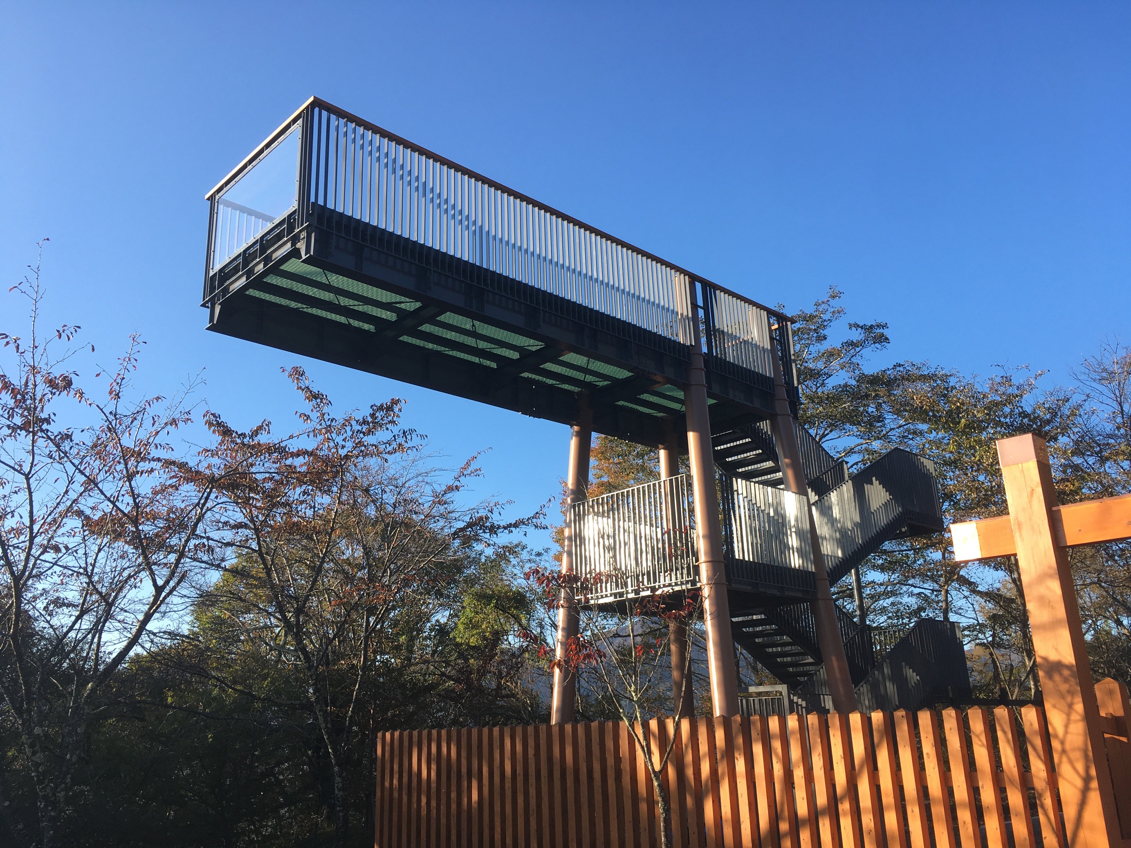 1,110m地点の崖から迫り出す一本橋のような「絶景やぐら」では、勇気を出して先端まで足を運べば、雄大な富士山を何も遮るもののない特等席でご覧いただけます。
