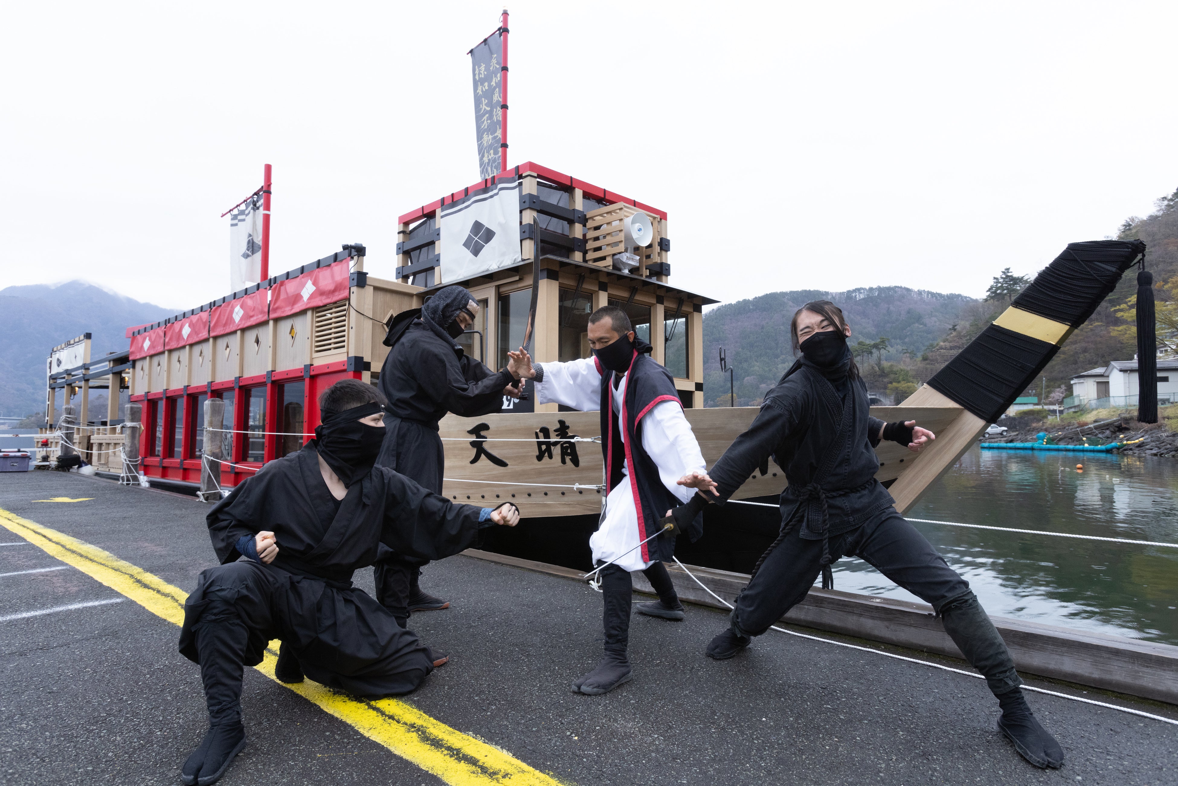 日本でここだけ!河口湖遊覧船「天晴」×忍者パフォーマンス集団「雷凮刄」本格忍者ショー4/23、4/24、5/14、5/15開催