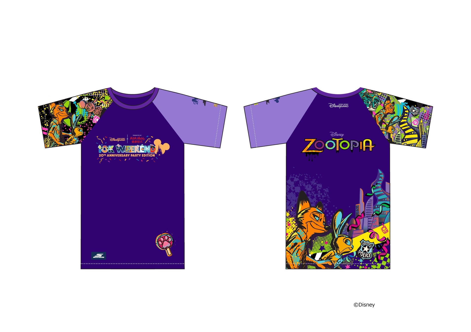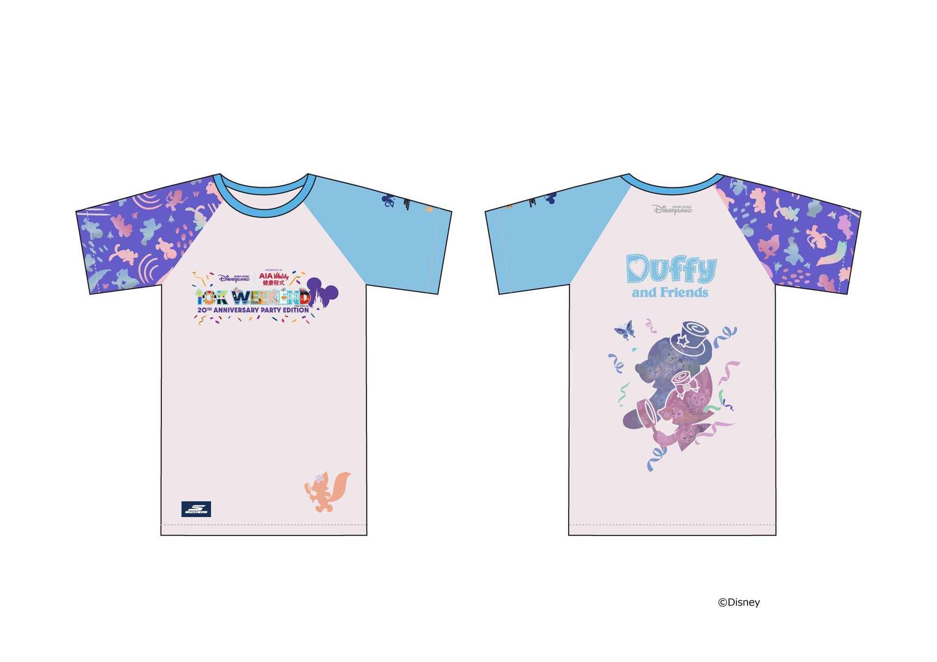 ランのテーマにあわせたTシャツや20周年記念スーベニア・ミニ・パーティー・アクセサリー付