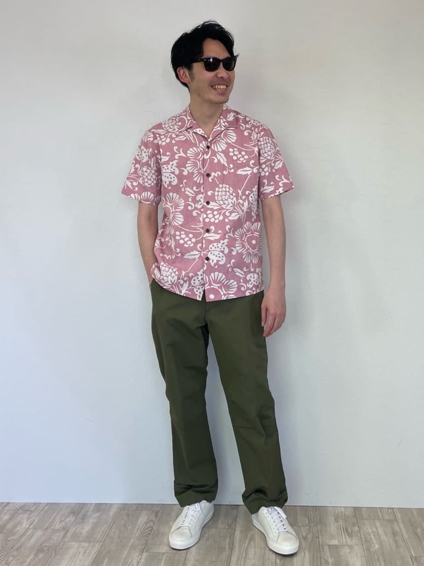 初夏の陽気に誘われて、気分の上がるアロハシャツコーディネートを組んでみました。スニーカースタイルにミリタリーパンツを合わせて、気兼ねなく着れる休日コーディネートです。インパクトのある総柄シャツですが、単色なので、意外と合わせやすく、夏のおしゃれを楽しめますよ。