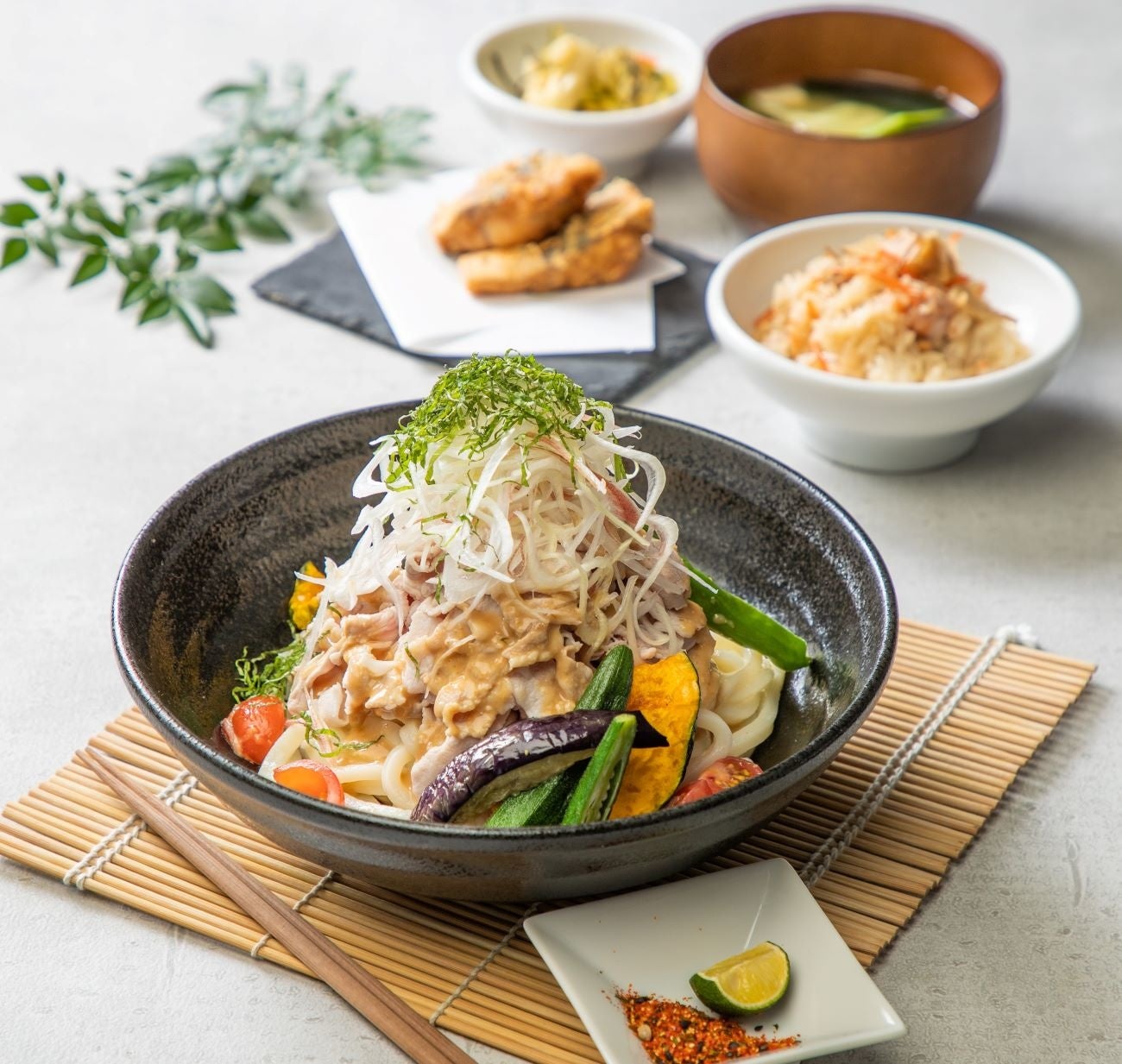 - 6月限定ランチメニューは夏野菜たっぷり『夏野菜の冷しゃぶ胡麻ダレうどん定食』