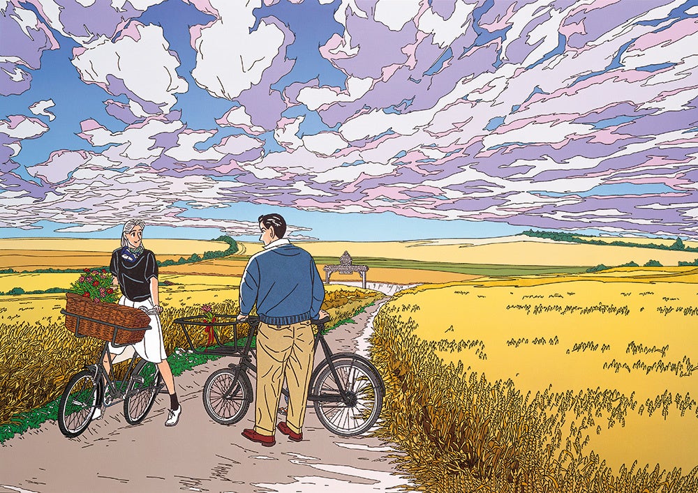 本展では、代表作ハートカクテルの原画や80年代の貴重なポスターなどの展示はもちろん、当時描いたシティポップが聴こえてくる作品から新たに2作品を版画化し、会場で先行販売いたします。当時から変わらぬ色鮮やかなタッチで描かれる空や雲に光や影のグラデーションなど、ハートフルなふたりが織りなす恋物語とともに「わたせせいぞうの世界」をどうぞお楽しみください。