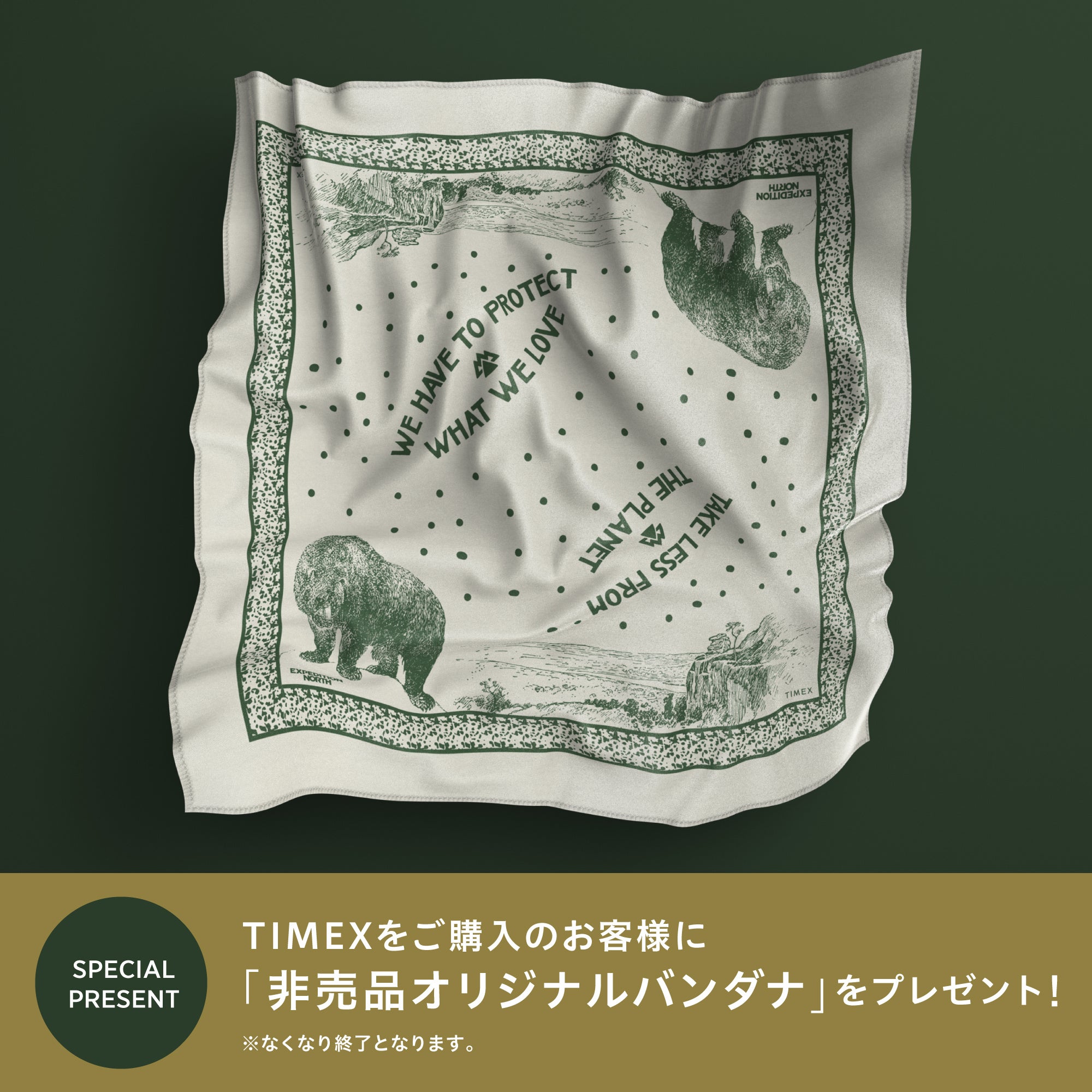 期間内、店舗にてタイメックスをご購入の方に非売品オリジナルバンダナをプレゼントいたします。