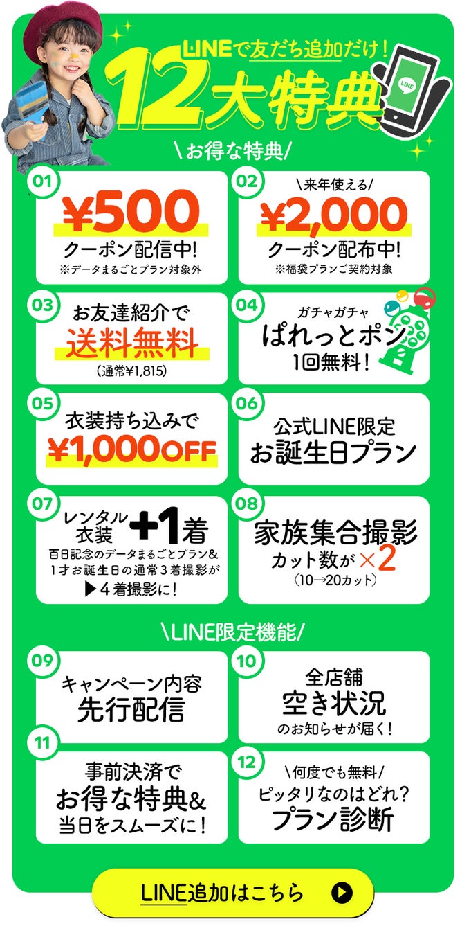 【今月限定】LINE友だち追加だけで最大12大特典!七五三シーズンを彩る特別キャンペーンを開始