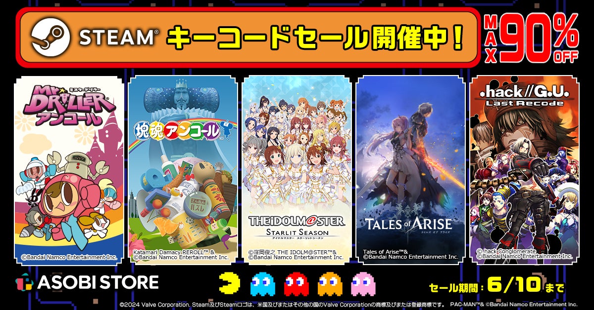 株式会社バンダイナムコエンターテインメントが当社のECサイト『ASOBI STORE game』にてSteamキーコードセールを開催したことをお知らせいたします。セール期間中は人気タイトルを最大90%OFFでご購入いただけます。
