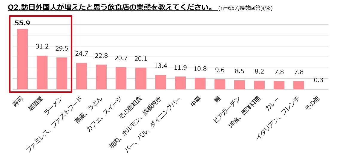3人に2人が外食先での訪日外国人が増えた思うと回答!寿司・居酒屋・ラーメンが人気