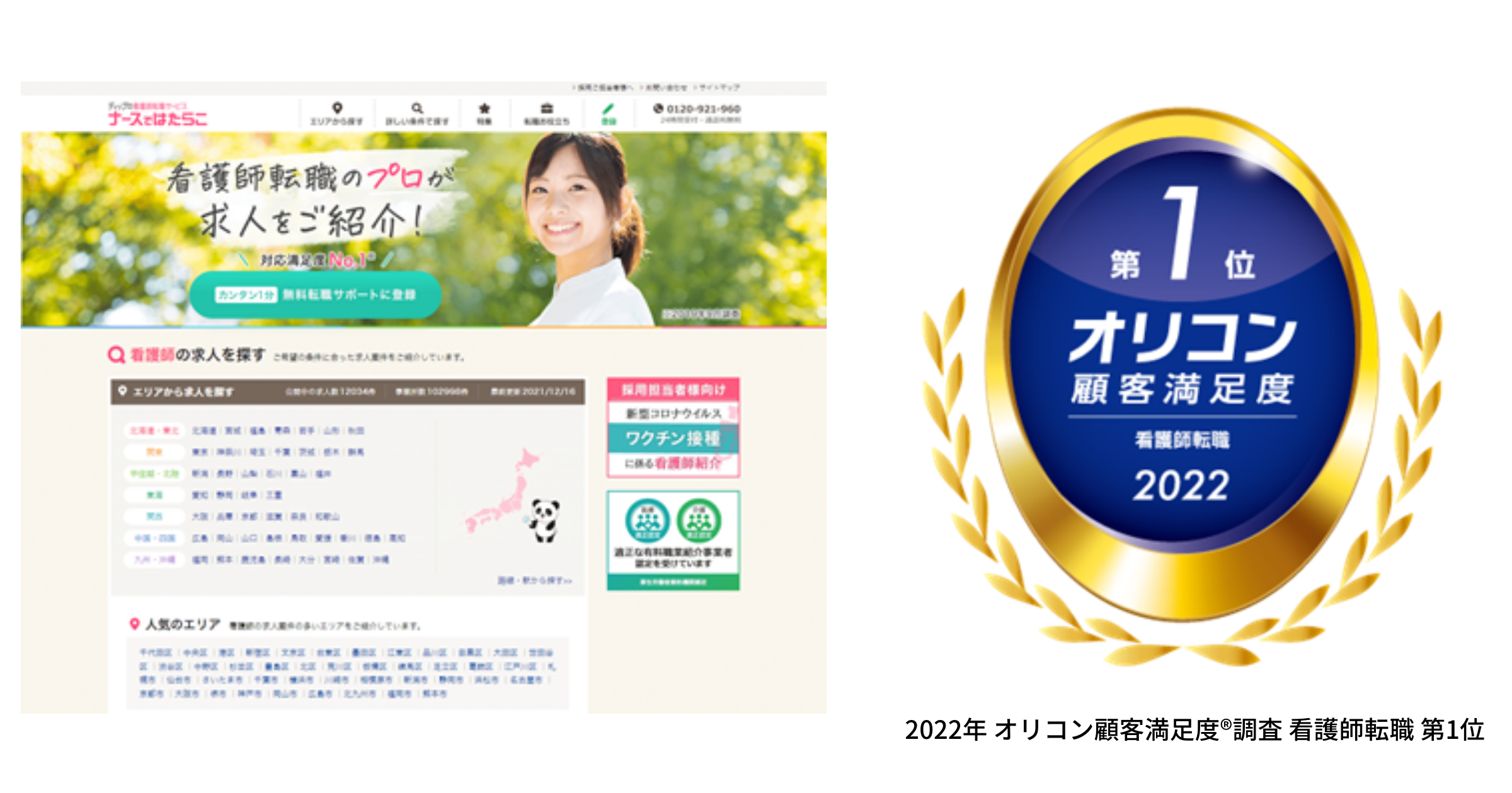 2022年 オリコン顧客満足度®調査 看護師転職ランキングで「ナースではたらこ」が第1位を獲得