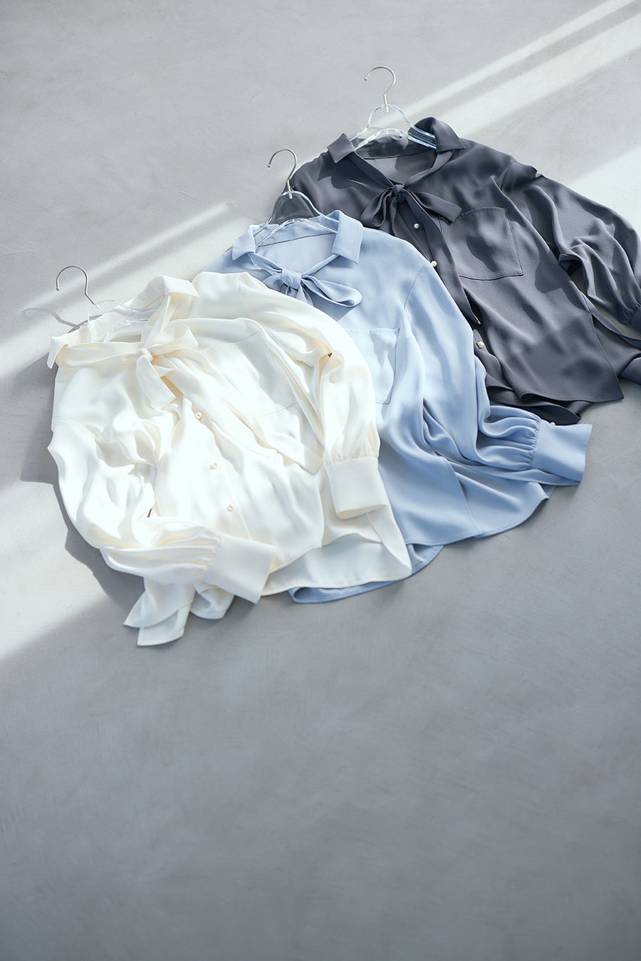 ■"みんなの声をカタチにした”速乾2WAYパールボタンボウブラウス