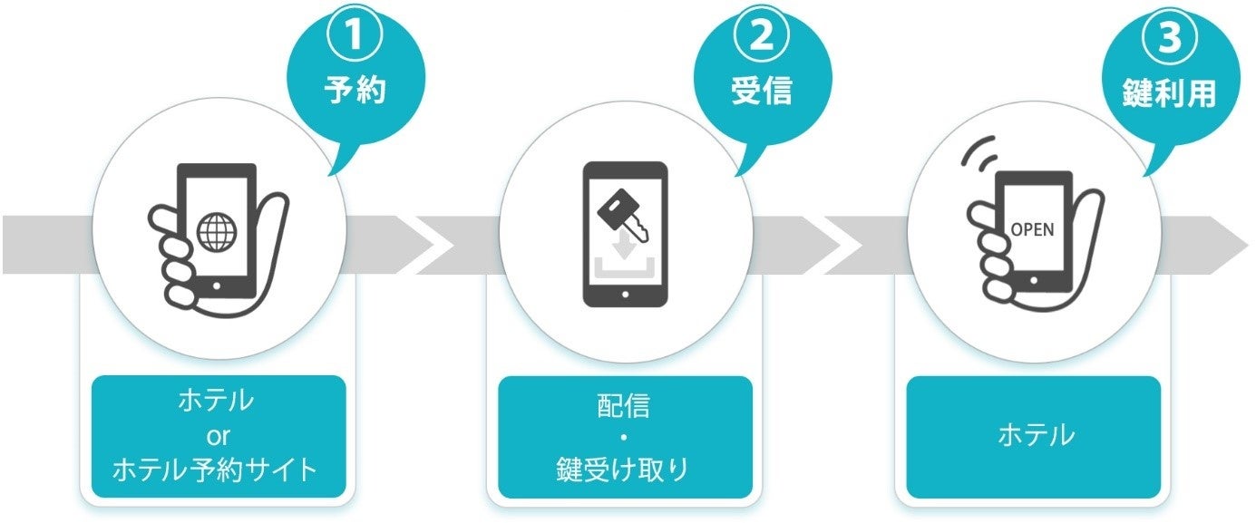 本サービスでは、ホテル公式のスマートフォンアプリにルームキーを配信することができ、ゲストは自身のスマートフォンを利用して滞在する部屋へ入室することができます。