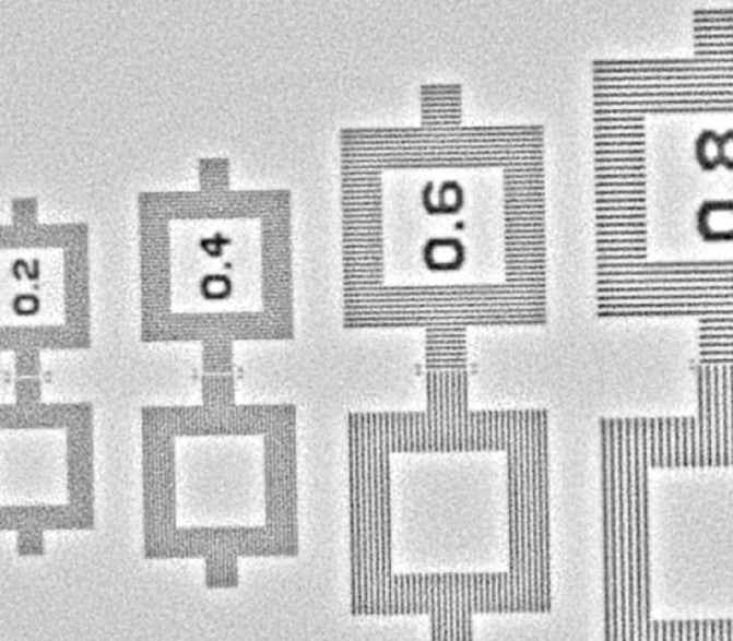 空間分解能チャートを用いて、斜入射モードでの空間分解能400nmのラインアンドスペース像です。