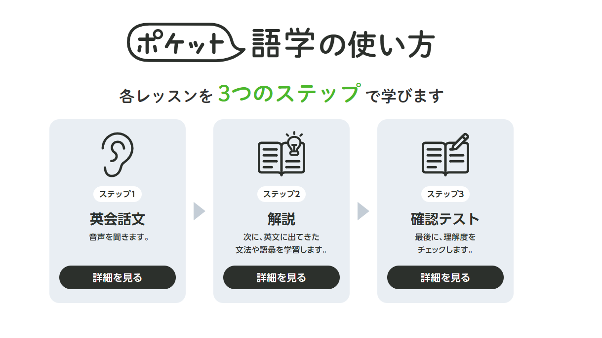 2)英語学習を習慣化しやすい「3ステップ」構成