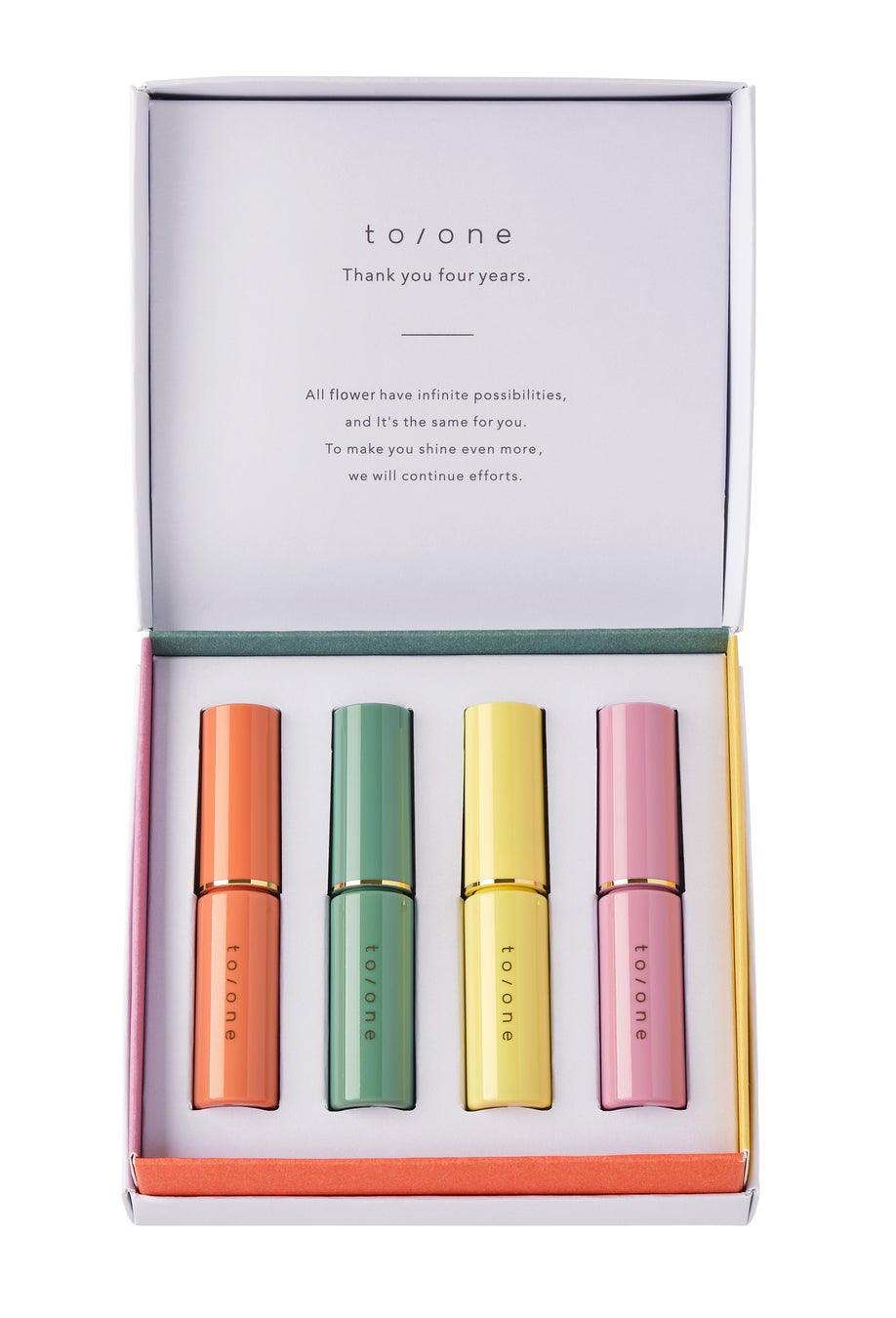 【to/one(トーン)】ブランド4周年記念アニバーサリーキットが登場!春を感じるカラーマスカラ4色セット