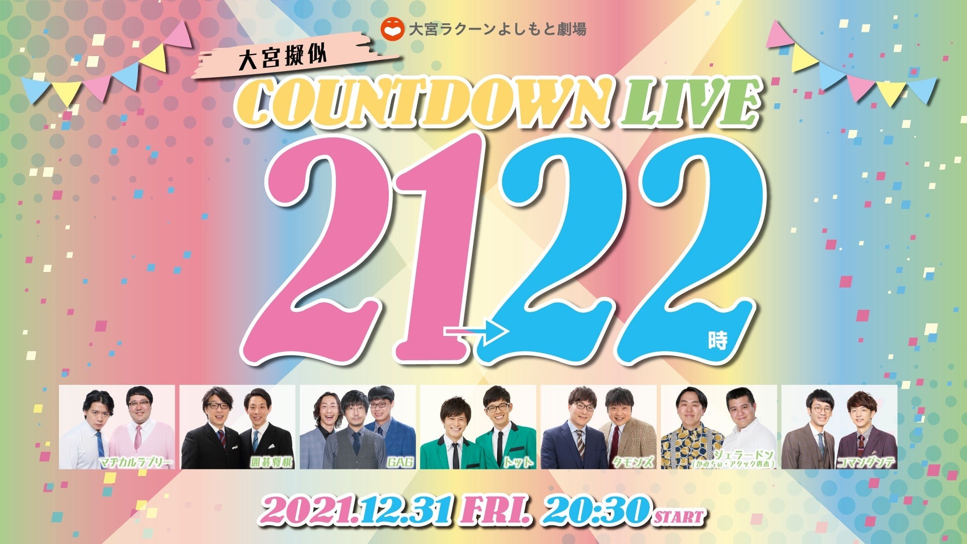 毎年恒例のカウントダウンライブは情勢を鑑みて開催を控えるため、今年の大宮は22:00に年越します。ぜひ大宮芸人と一緒に21→22(時)の疑似カウントダウンを楽しみましょう!